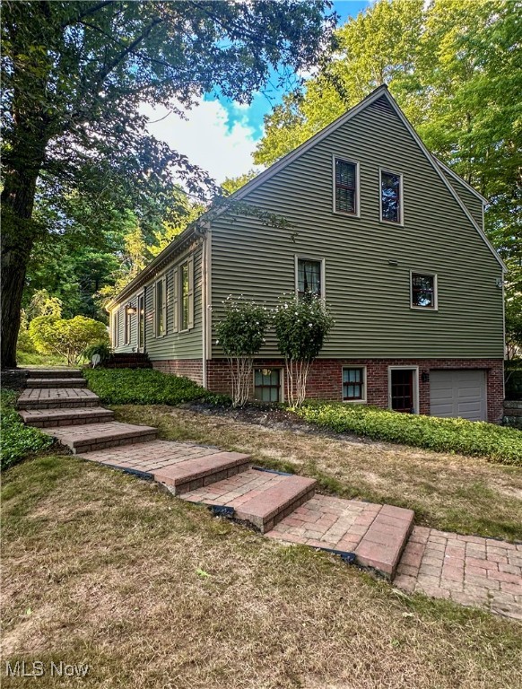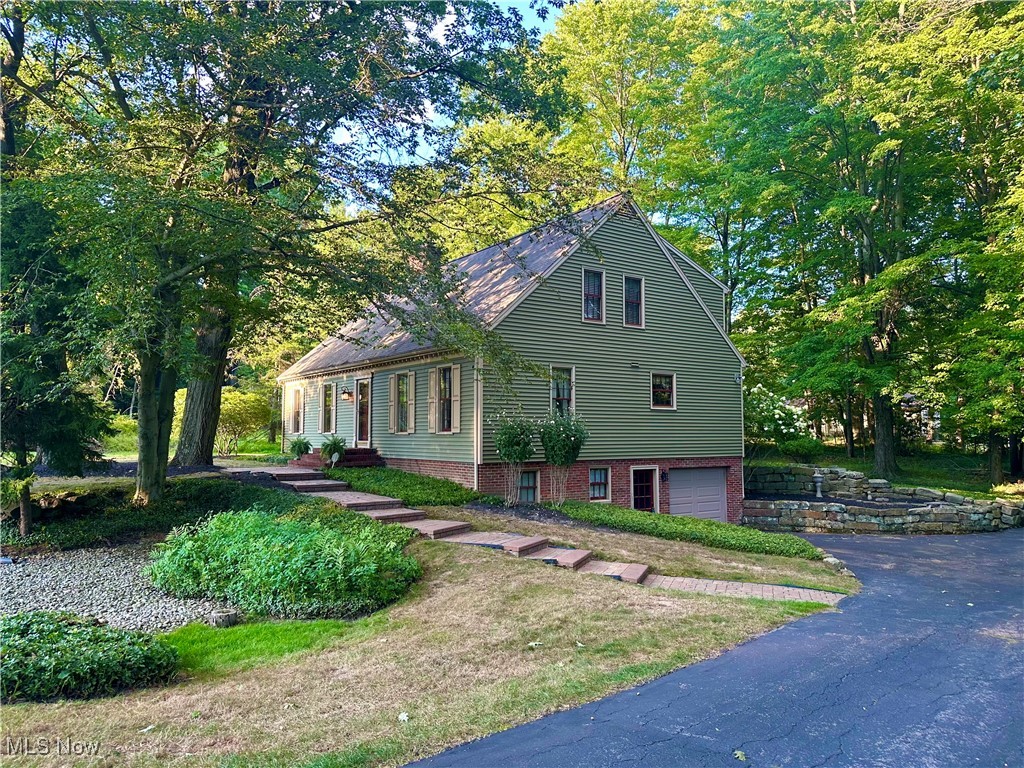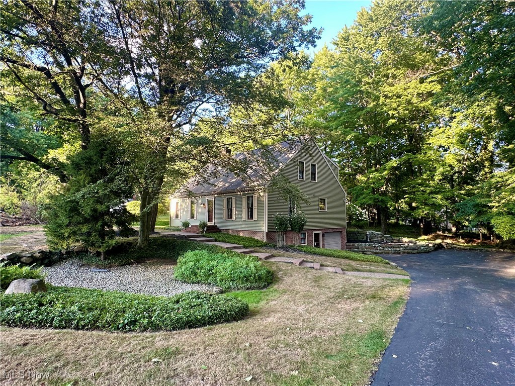 Nestled on a shaded half-acre lot on a quiet street, this charming Cape Cod blends classic appeal with modern comfort amidst a serene, impeccably kept neighborhood. Boasting nearly 2,500 square feet of inviting living space, the home greets you with brick walkways, stone walls, and lush landscaping that create standout curb appeal. Inside, a welcoming foyer leads to a formal living room with a gas fireplace and a generous dining room, both bathed in natural light from large windows. The cozy, wood-paneled family room offers built-in bookshelves and a second fireplace for chilly evenings, while the eat-in kitchen provides ample space for meal preparation and casual dining. A convenient laundry closet sits in the kitchen, with basement hookups if you'd prefer to use the closet as a large pantry. A handy half-bath completes the main level. Upstairs, the spacious primary suite features a walk-in closet and an attached bath, delivering a relaxing retreat after a long day. Two nice-sized bedrooms and another full bath provide plenty of space for loved ones and guests. Other notable highlights include a full walk-out basement with rec room, a beautiful stone patio for al fresco dinners, an attached garage, and an oversized driveway for extra parking. All of this is set in a peaceful neighborhood just moments from Youngstown Country Club, recreation, schools, and dining options. This home offers a delightful blend of classic charm and practical comfort in a prime location.