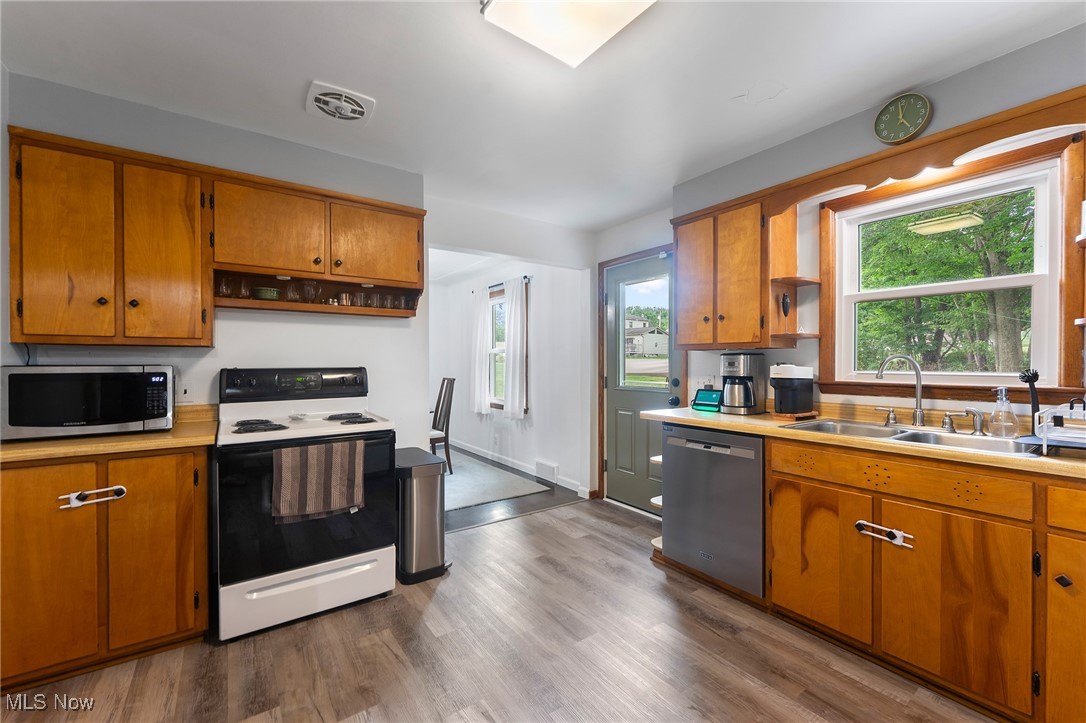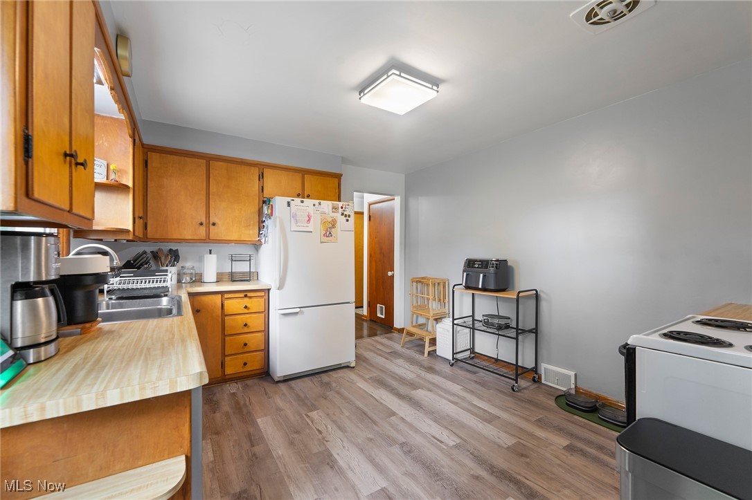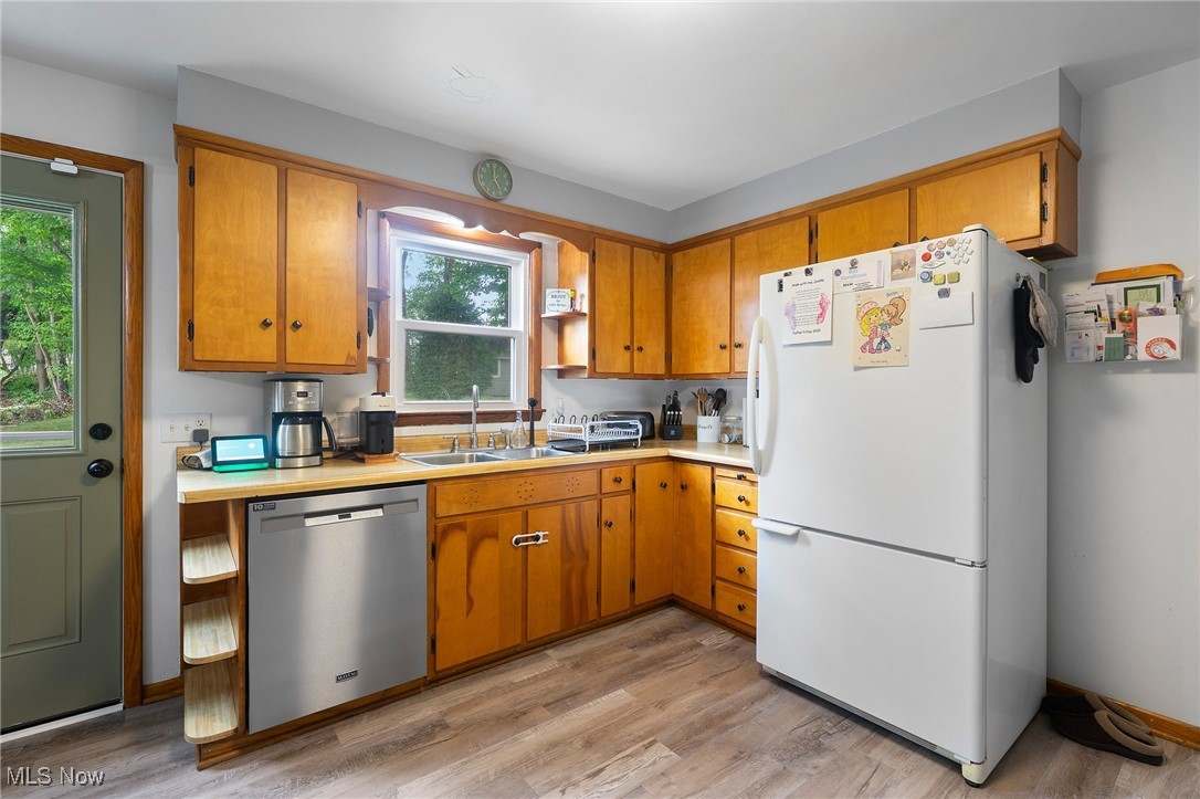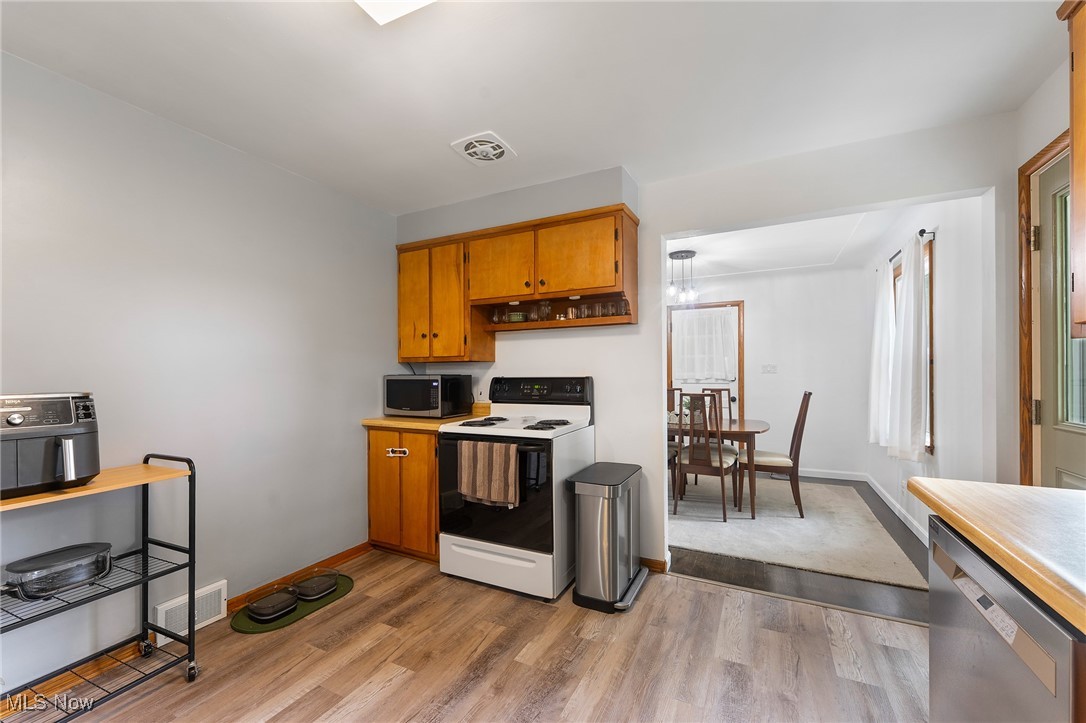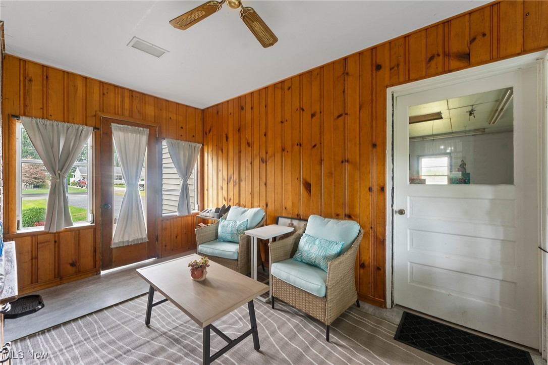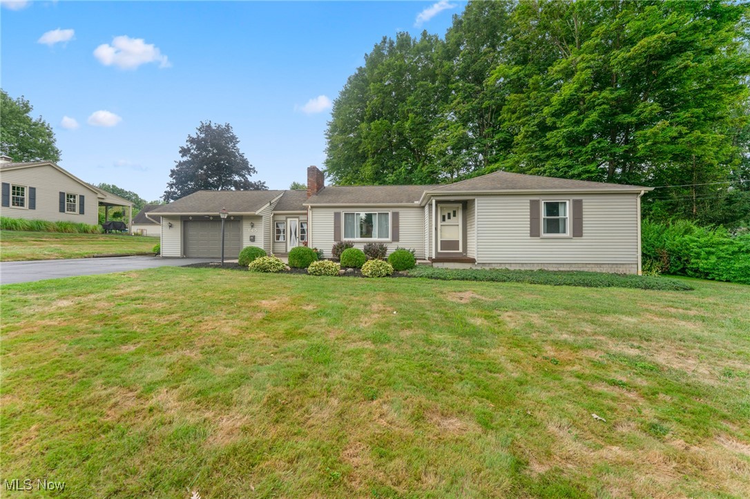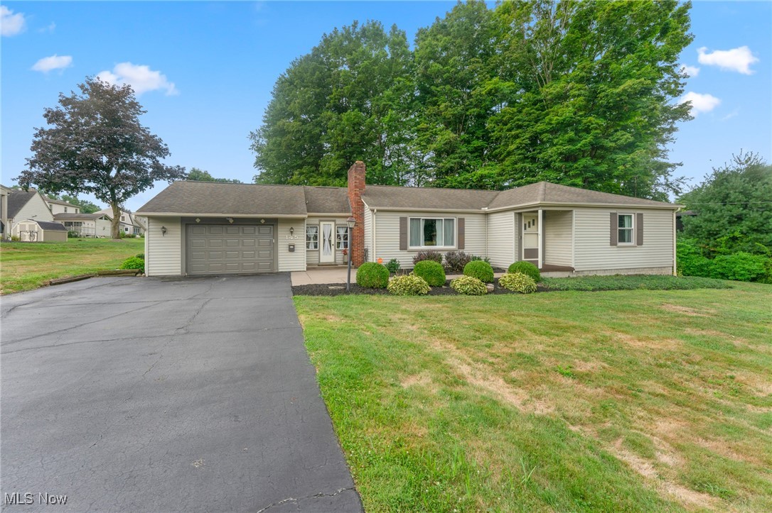 Discover this charming ranch-style home at 145 Belle Vista Ave, Hubbard, Ohio, offering over 1,300 sq. ft. of comfortable living space with 3 bedrooms and 2 full bathrooms. Situated on a spacious half-acre lot, there's plenty of room for outdoor activities, pets, or gardening. Step inside to a large living room with coved ceilings, fresh carpet, and a cozy fireplace. The adjoining dining room features hardwood floors, updated fixtures, and coved ceilings, adding a touch of timeless character. The home boasts new vinyl windows throughout, bringing in plenty of natural light. The kitchen offers wood cabinetry, laminate countertops, vinyl plank flooring, and ample space for meal prep, with direct access to the back deck, brick patio, and storage shed. All three main-floor bedrooms showcase hardwood floors and large double closets. The full bathroom is updated with a new vanity, porcelain tub, tile walls, and vinyl plank flooring. The basement provides abundant storage, a dedicated laundry area with a convenient laundry chute, a full bath with walk-in shower, and an additional room perfect for finishing or extra storage. A breezeway with wood paneling and new vinyl flooring connects the home to the attached 2-car garage. Mechanical updates include a newer 100-amp panel, high-efficiency furnace and AC, dimensional shingle roof, vinyl siding, and fresh paint throughout. Located in the desirable Hubbard School District, this move-in-ready home blends classic charm with modern updates.