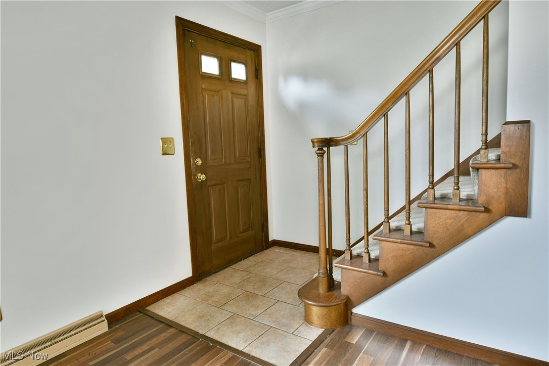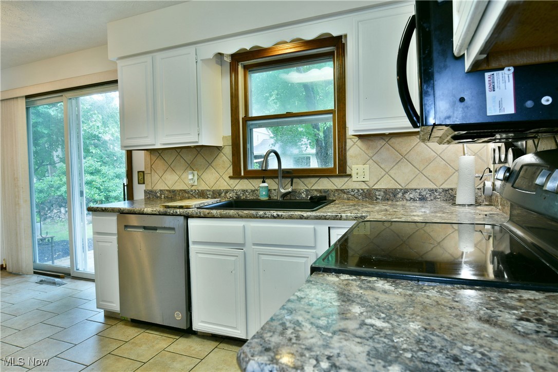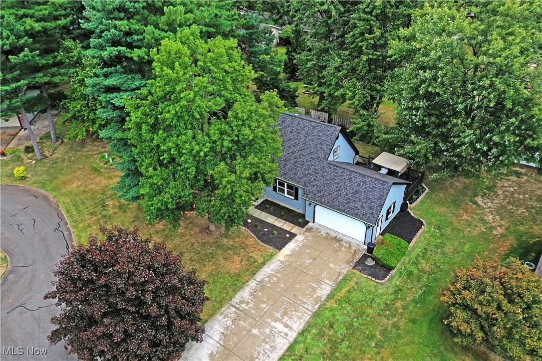 Welcome home to your summertime relaxation getaway as you kick back beneath the trees! This move-in-ready Cortland home should be at the top of your list with its great looks inside and out plus an impressive four-bedroom layout. The prime location puts you within a highly desirable neighborhood set along a quiet cul-de-sac style loop for minimal traffic. The terrific residence peers out from beneath the trees as you quickly note the bold red entry door and matching shutters. Beautifully manicured landscaping follows multiple mulch beds that lead around to find the must-see rear patio, ready to entertain in shady, natural privacy. Inside, a spacious living room sets the tone as hardwood styled flooring runs from the tiled foyer and carpeted staircase landing. Sunshine filters through the tall windows for plenty of natural light. Around the corner, the combined kitchen and eat-in dining space offers casual backyard views and a transition to the robust tiled flooring. Modern appliances pair with the marbled stone countertops, adding to the appeal. Down a short hall, a colorfully tiled full bath accompanies a pair of carpeted bedrooms to complete the floor. Upstairs, two additional loft rooms join a second full bath and its wraparound layout. Down below, a full basement offers laundry services and plenty of storage. Brand new roof, siding and gutters!