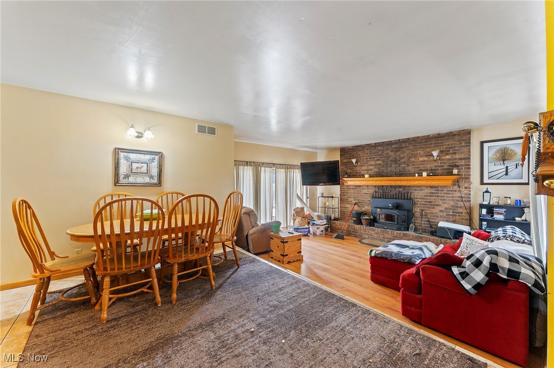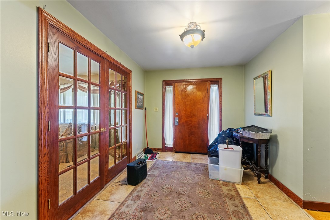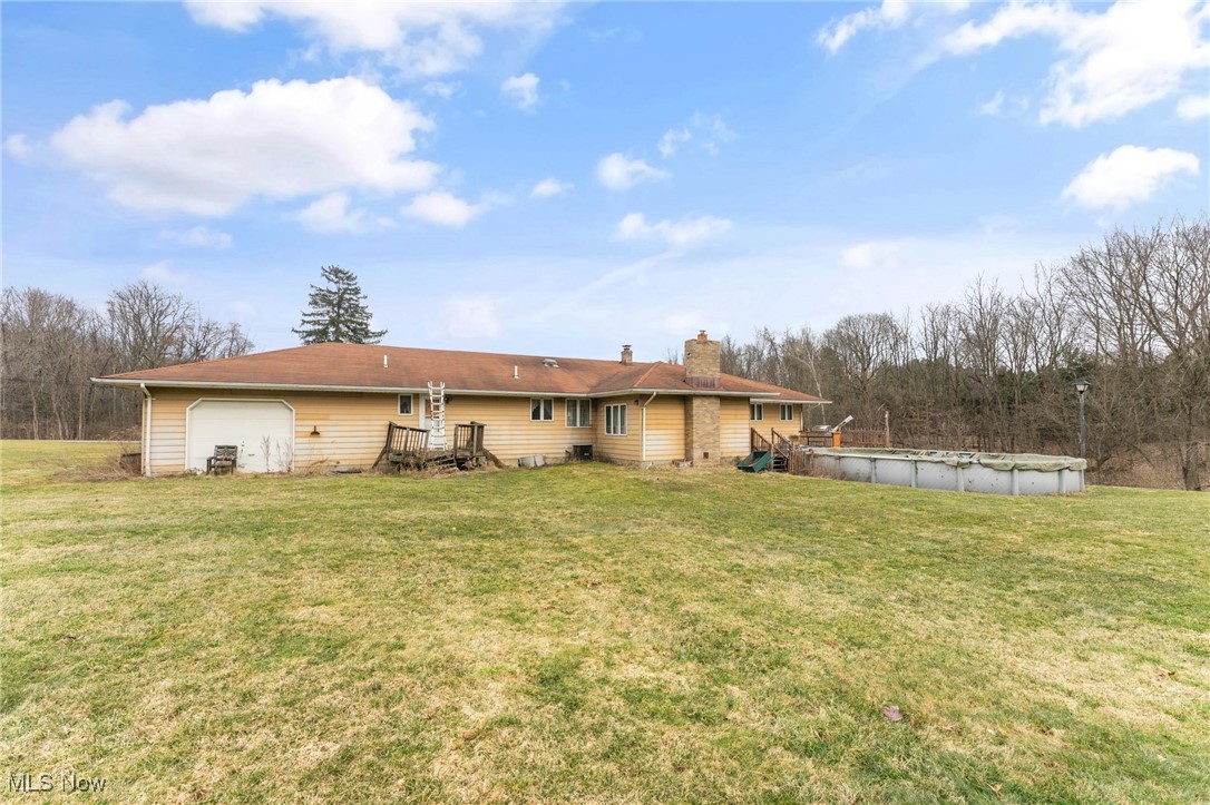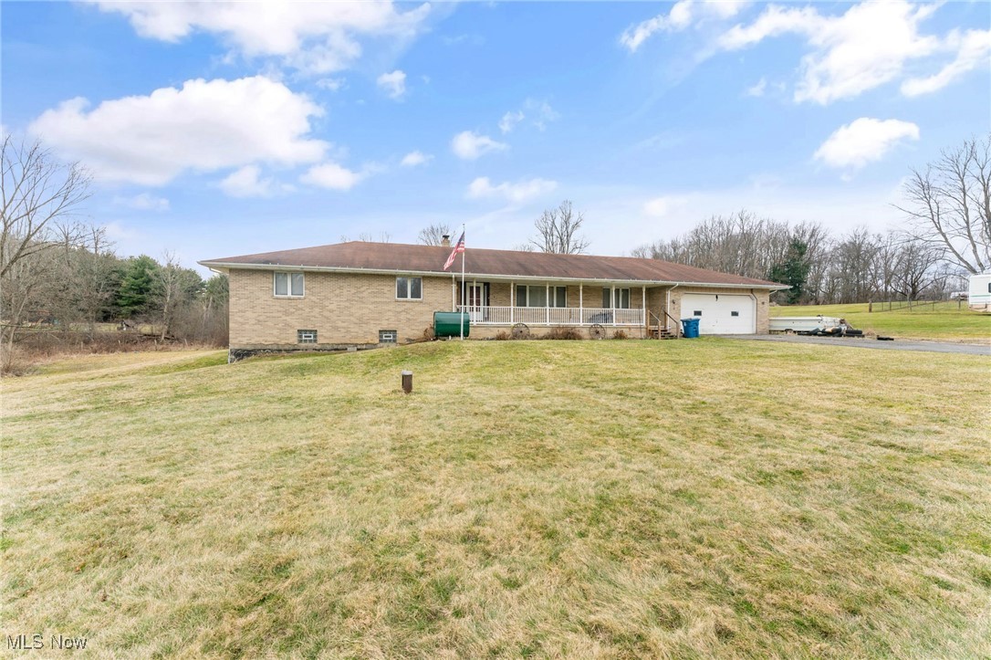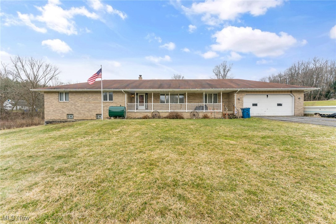 Situated on 3 acres, 1929 John White Rd in Hubbard offers plenty of space and potential for its next owner. With a solid brick front and a long front porch, this home provides a country living feel while offering room to make it your own. Step inside to a tiled foyer leading into a formal living space with carpet and French doors, seamlessly connecting to the dining area. The kitchen is equipped with an abundance of wood cabinetry, tile flooring, ample counter space, and a cozy eat in area that opens to a step down living room. This inviting space features vinyl plank flooring, a beautiful wood-burning brick fireplace, and two access points to the backyard, one leading to a deck with an above-ground pool and the other to the yard. Hallway leads to a full bathroom with a double sink vanity and tub. The primary suite includes carpet and a full bathroom with a tub, walk in shower, and vanity that could use a little TLC. Two additional large bedrooms feature laminate flooring and great closet space. The main floor also includes a laundry room with a half bath and access to the attached oversized two-car garage, which offers extra storage and a convenient drive-through access to the backyard. Downstairs, the full 12 course basement provides extensive storage space and includes a large, finished room with a small kitchenette, carpet, closets, and a walk out to the side yard, where a peaceful creek flows. Additional features include a newer furnace, AC, three tab shingle roof, and a 200-amp electrical panel. This home is full of possibilities, bring your vision and make it your own! Schedule your private tour today! Open enrollment to Hubbard and Lowellville but conduct your own diligence.