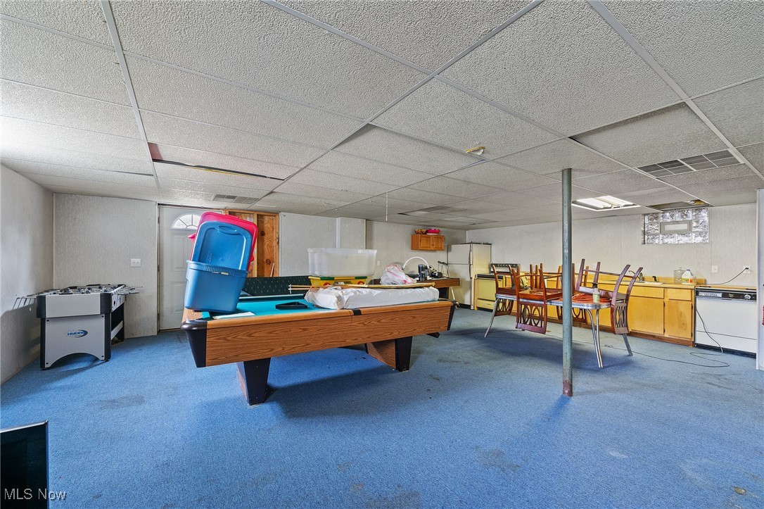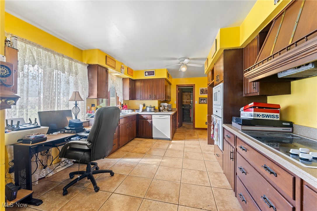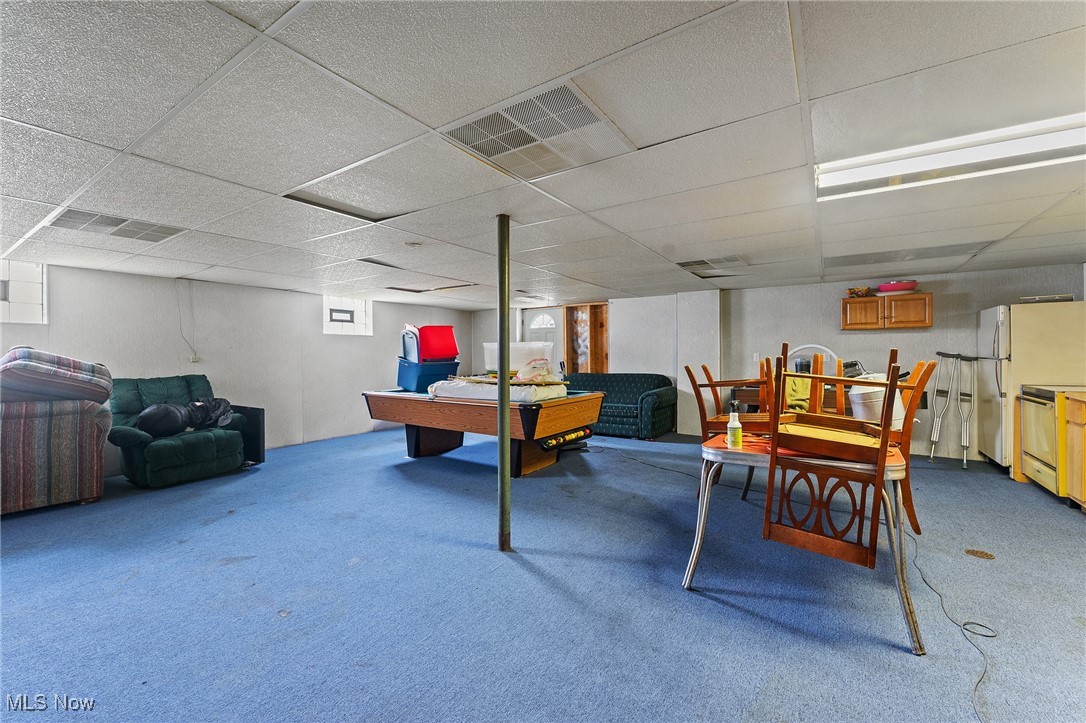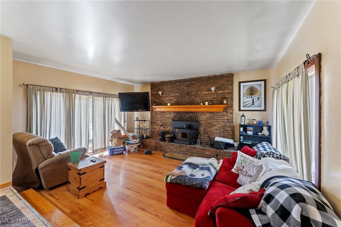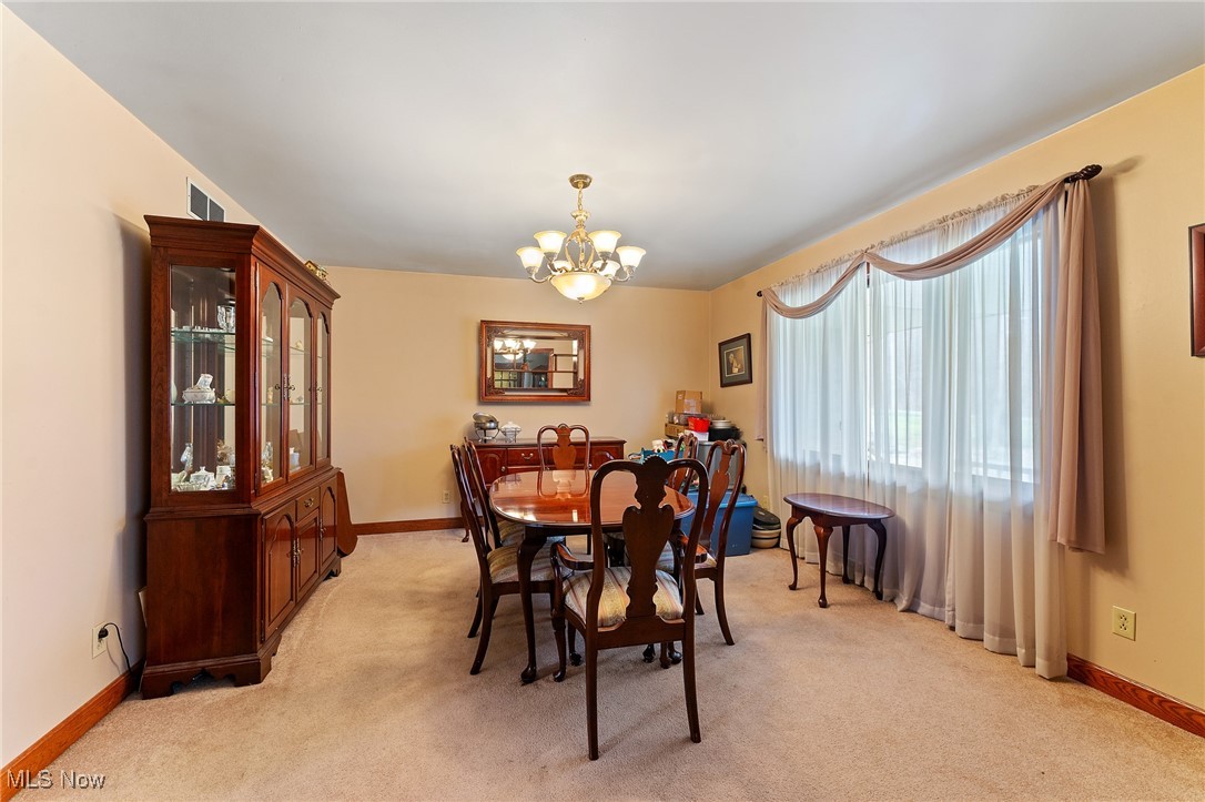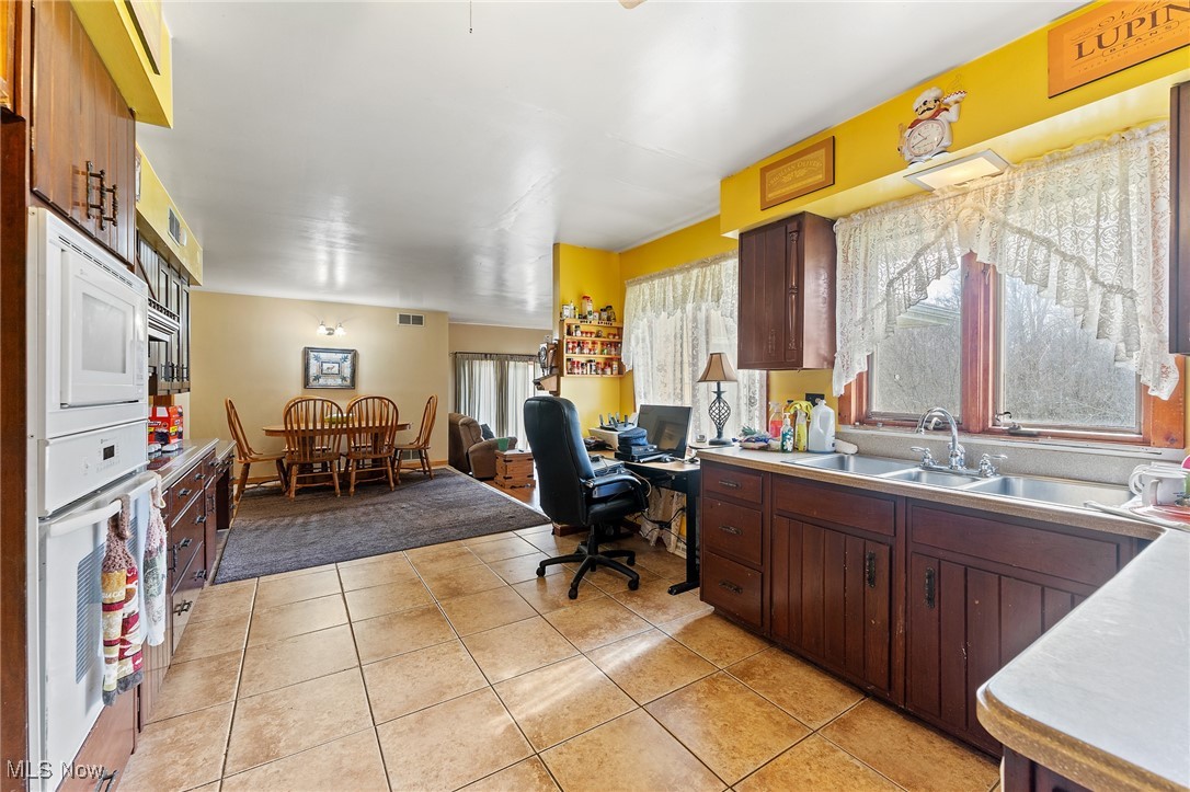 Situated on 3 acres, 1929 John White Rd in Hubbard offers plenty of space and potential for its next owner. With a solid brick front and a long front porch, this home provides a country living feel while offering room to make it your own. Step inside to a tiled foyer leading into a formal living space with carpet and French doors, seamlessly connecting to the dining area. The kitchen is equipped with an abundance of wood cabinetry, tile flooring, ample counter space, and a cozy eat in area that opens to a step down living room. This inviting space features vinyl plank flooring, a beautiful wood-burning brick fireplace, and two access points to the backyard, one leading to a deck with an above-ground pool and the other to the yard. Hallway leads to a full bathroom with a double sink vanity and tub. The primary suite includes carpet and a full bathroom with a tub, walk in shower, and vanity that could use a little TLC. Two additional large bedrooms feature laminate flooring and great closet space. The main floor also includes a laundry room with a half bath and access to the attached oversized two-car garage, which offers extra storage and a convenient drive-through access to the backyard. Downstairs, the full 12 course basement provides extensive storage space and includes a large, finished room with a small kitchenette, carpet, closets, and a walk out to the side yard, where a peaceful creek flows. Additional features include a newer furnace, AC, three tab shingle roof, and a 200-amp electrical panel. This home is full of possibilities, bring your vision and make it your own! Schedule your private tour today! Open enrollment to Hubbard and Lowellville but conduct your own diligence.