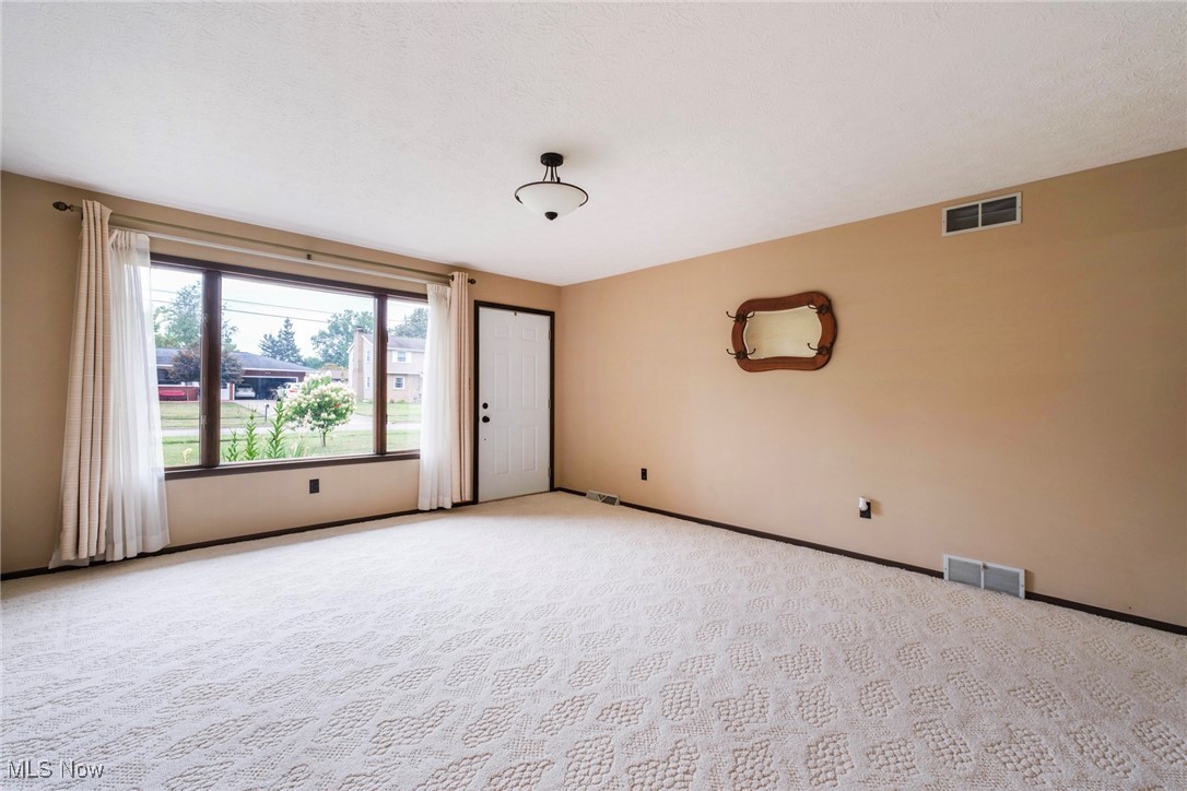 Through the front entry, you'll find a welcoming living room with a large picture window that fills the space with natural sunlight. Down the hall are three generously sized bedrooms, each with large closets, along with a full bath. The primary bedroom also features its own private half bath.