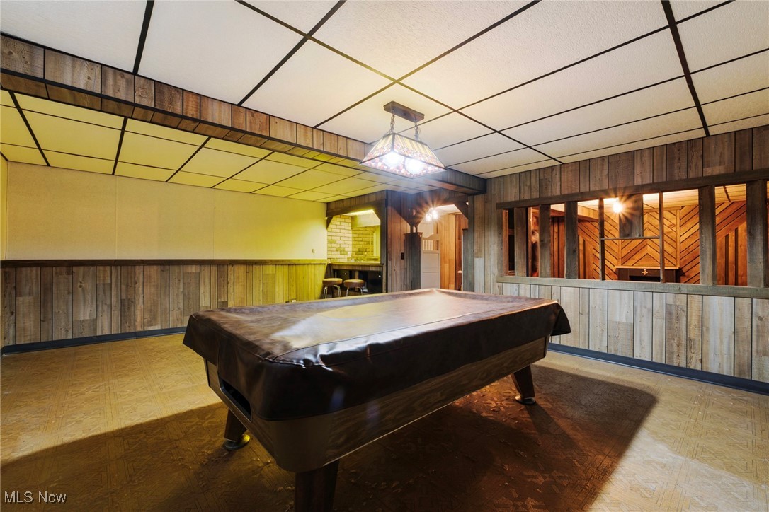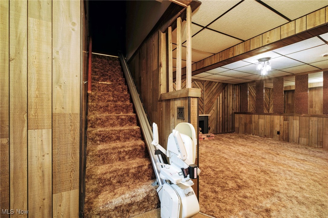 The 12-block basement is a true bonus, accessible by a chair lift. It includes a finished rec room with wood-paneled walls, a faux fireplace, and charming western swing doors leading into the game room--complete with a pool table and wet bar. The basement also offers an additional finished bedroom, a full bathroom, laundry space, and plenty of storage.