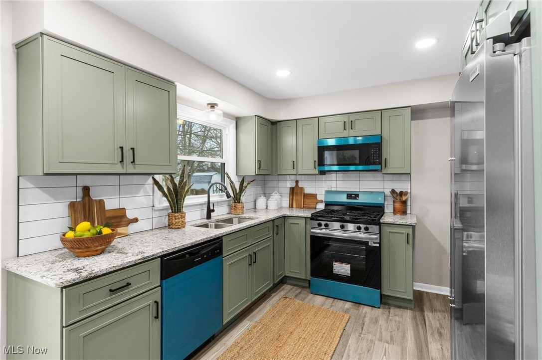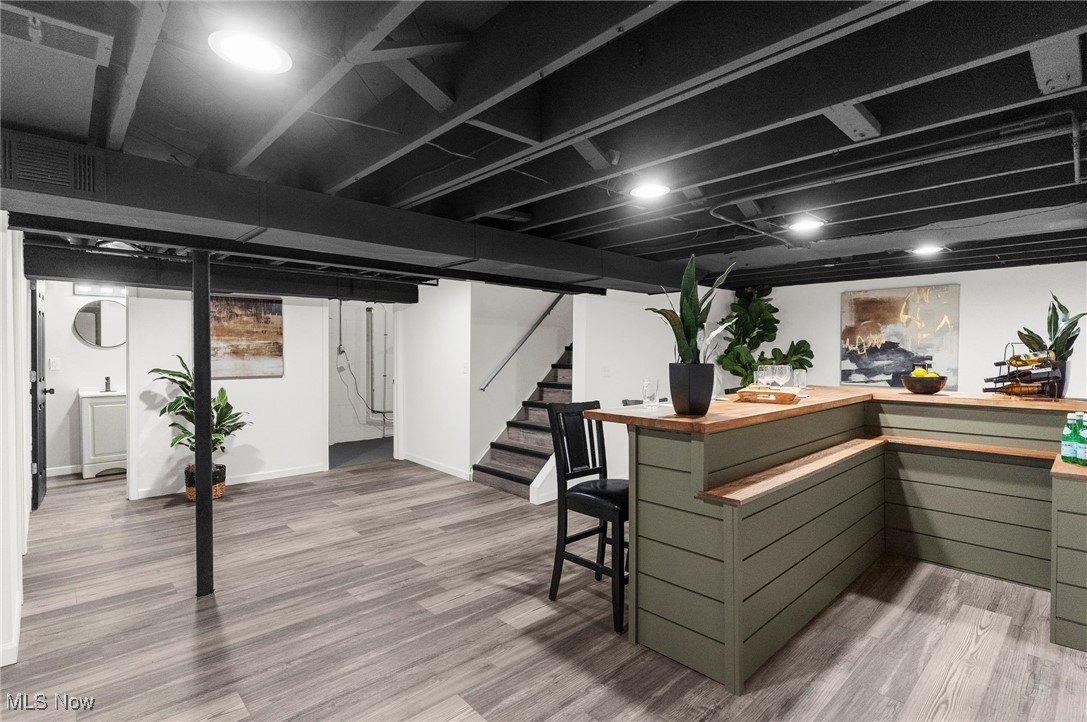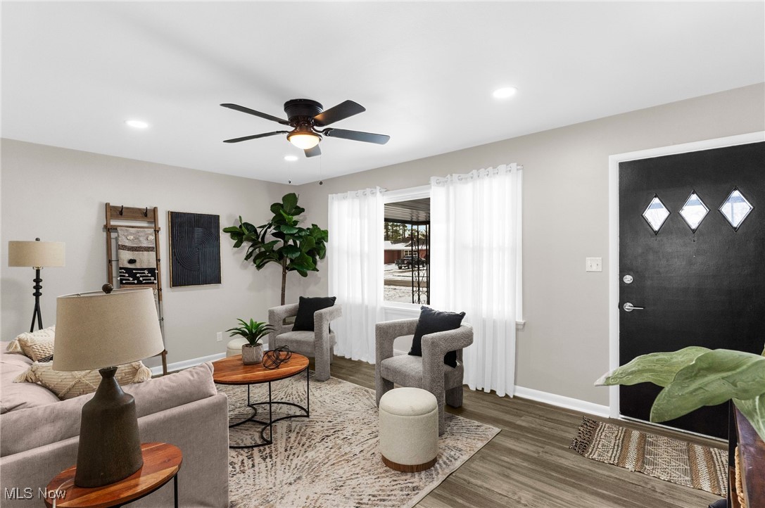 Welcome to this fully remodeled 3-bedroom, 2-full-bath home located on a quiet street in Youngstown. Step inside to an inviting living room with new vinyl plank flooring that flows seamlessly throughout the main level. The brand-new eat-in kitchen features soft-close cabinetry, granite countertops, a subway tile backsplash, and convenient access to a small dining area leading out to the back deck and fenced-in backyard, perfect for outdoor enjoyment. 3 main floor bedrooms offer comfortable space and nice closets, complemented by updated light fixtures and fresh finishes throughout. The beautifully renovated full bathroom includes tiled walls, a tub/shower combo, new vanity, and toilet. The partially finished basement expands your living options, featuring a cozy hangout spot with a shiplap-accented bar area with butcher block countertop, plus an additional room ideal for a 4th bedroom, office, or flex space. You'll also find a laundry area, storage, and a second full bathroom with a tiled walk-in shower. Enjoy peace of mind with new major mechanicals, dimensional shingle roof, aluminum siding, and a 2-car attached garage. This move-in-ready home offers modern updates, great space, and true convenience, don't miss it!