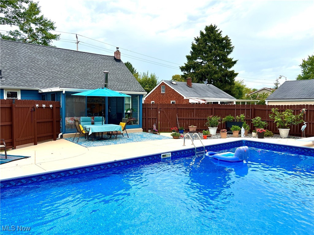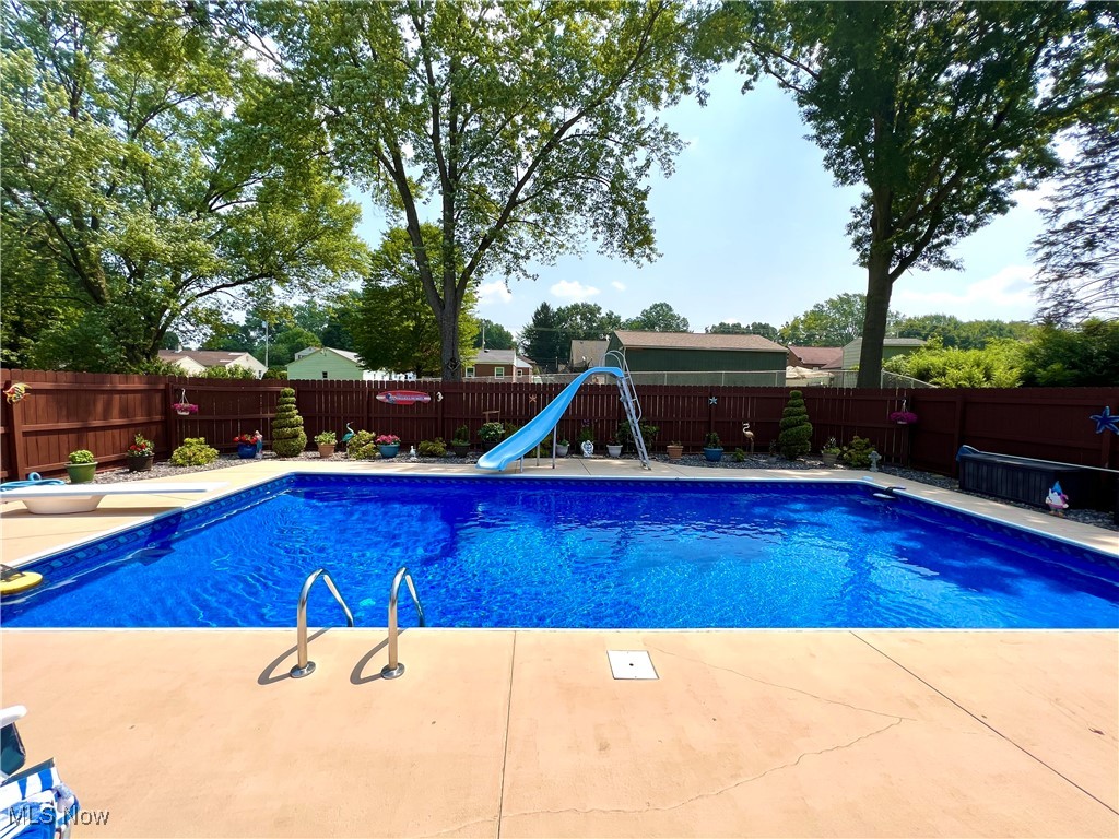 Imagine your private resort just minutes from downtown Hubbard! Nestled on two city lots totaling nearly 0.4 acres, this expansive Cape Cod home delivers over 2,600 square feet of living space, designed for effortless entertaining and carefree summer living. Step outside to discover your own inground oasis: a sparkling pool complete with built-in diving board and waterslide, surrounded by a privacy fence for intimate gatherings. Whether you're hosting a weekend barbecue on the concrete patio or sipping morning coffee in the adjacent three-season sunroom, every moment feels like a staycation. A new vinyl liner (2022), winter mesh cover (2024), and updated pool equipment ensure you spend more time swimming and less time maintaining. Inside, flexibility reigns: 3 generous bedrooms plus a versatile bonus room (perfect for a fourth bedroom or home office), and a convenient bathroom on each floor. The main-floor bath was fully remodeled in 2018 with quartz countertops and modern fixtures, while the lower level was waterproofed, outfitted with fresh carpeting (2022), and features its own full bath, ideal for a game room, man cave, or guest suite. Ample storage comes courtesy of three basement storage rooms, a pantry, and a spacious walk-in attic off the top floor. The attached two-car garage, breezeway, and shed provide plenty of space for toys, tools, and lawn equipment, while the fully fenced yard offers a safe playground for kids and pets. Mechanical updates: a 200-amp electrical service (2016), high-efficiency sump pump and waterproofing (2016), gas range and dishwasher (2024), new roof (2023), and fresh exterior paint (2023). Experience the best of Hubbard city living with city water, sewer, and all the creature comforts you crave, while hosting unforgettable poolside parties and enjoying every season in style. This is more than a home, it's your personal entertainment paradise.