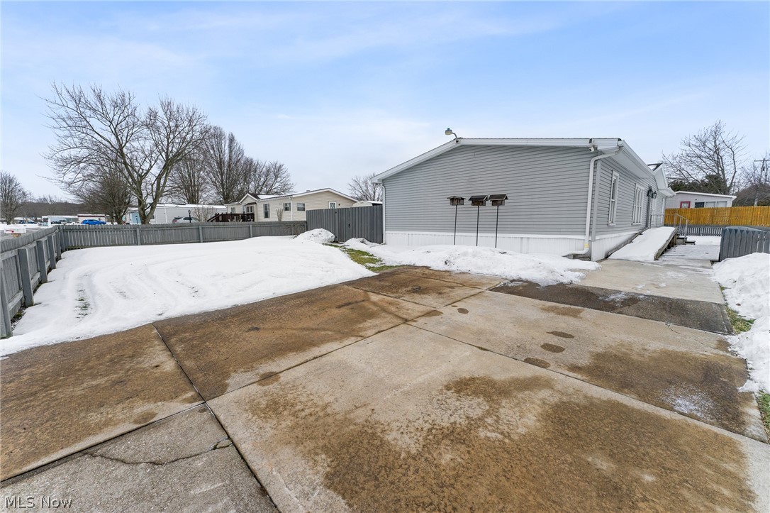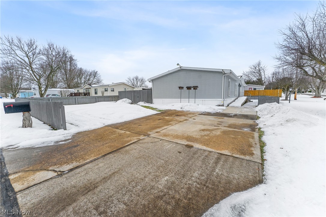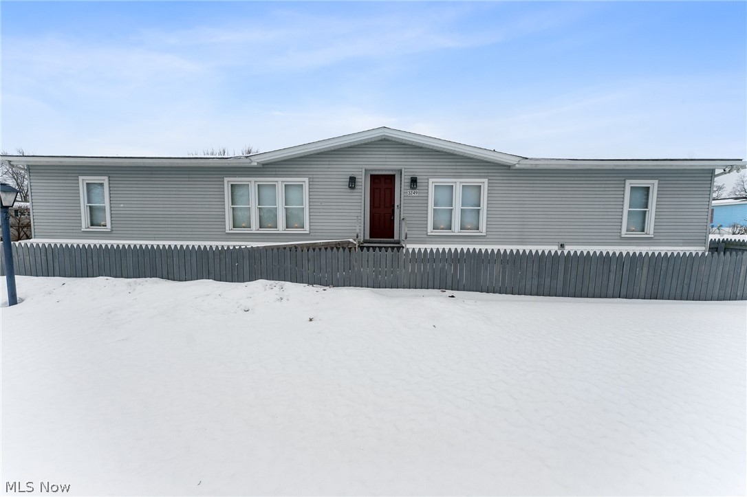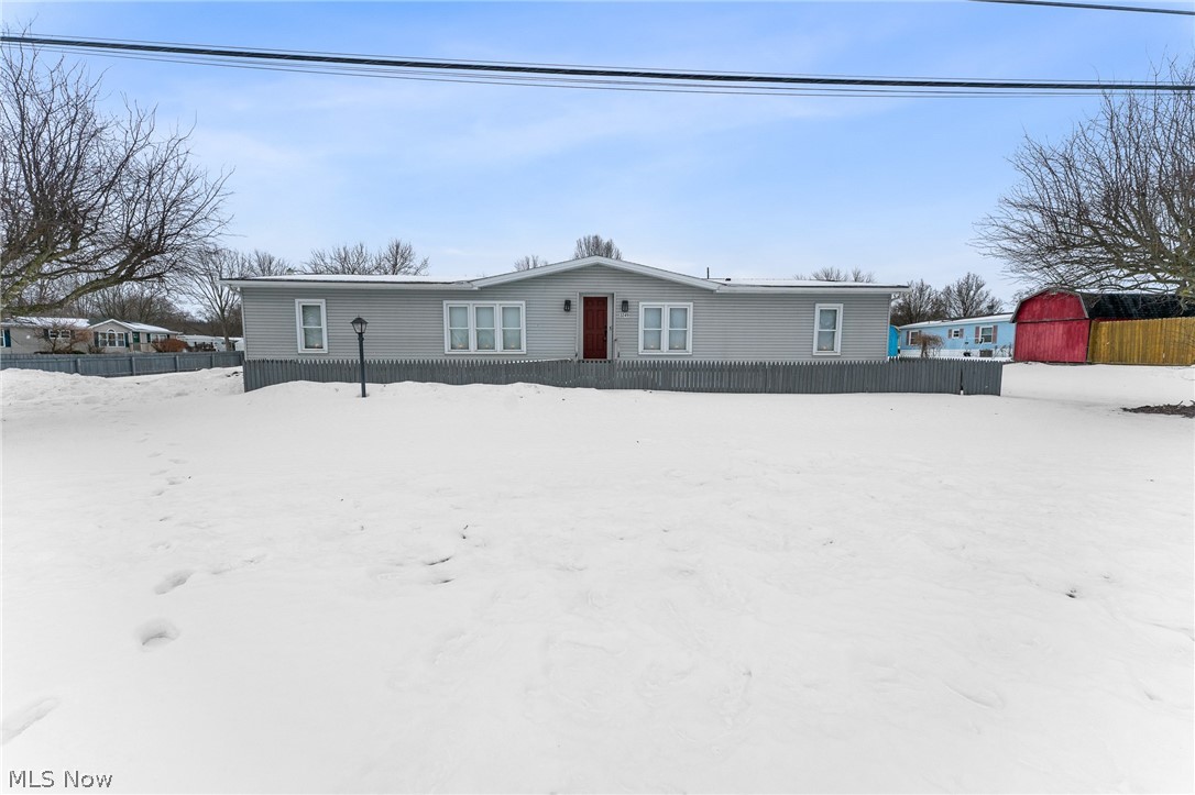 Welcome to this well-maintained manufactured home located in a desirable community offering comfort, space, and custom character throughout. Step inside to a large, vaulted living room with carpet that creates an open and inviting atmosphere. The kitchen features painted red cabinetry, laminate countertops, and ample cabinet storage, along with a dedicated dining area perfect for everyday living. The home offers a split-bedroom layout for added privacy, with the primary suite situated on one side featuring a walk-in closet and a custom rustic-designed full bathroom complete with a walk-in shower and custom vanity. On the opposite side of the home are two additional carpeted bedrooms with double closets and a second full bathroom showcasing a similar rustic design with tub surround and vanity. The main-floor laundry room provides convenient access to the backyard patio area and shed. The shed offers an enclosed storage section plus second-floor access for additional storage space. Additional features include furnace and central air, generator, vinyl siding, dimensional shingled roof, and a double concrete driveway. The current owner's lot fee is 300 per month. Conveniently located near Lordstown and surrounding manufacturing facilities, this home offers an affordable opportunity in a great community setting.