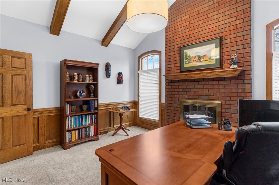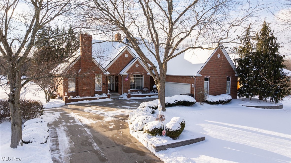 Welcome to 380 Shadydale in desirable Canfield! This stunning all-brick home offers 5 bedrooms and 4 bathrooms with flexible living space inside and out. A long concrete driveway leads to a heated 2.5-car attached garage, and inside you'll find a welcoming entry with tile landing that flows to the spacious living and dining areas. The large living room features abundant natural light and a gas see-through fireplace into the family room with hardwood flooring. The eat-in kitchen boasts solid wood cabinetry, granite countertops, tile backsplash, large island with gas range, pantry pull-outs, double stainless ovens, and recessed lighting. Just off the kitchen is a bright sunroom with French doors, tile floor, shiplap ceiling, and patio access. The main level also includes first-floor laundry and half bath, a luxurious primary suite with patio access, double vanity, Jacuzzi tub, walk-in shower, and oversized walk-in closet, plus an office with vaulted ceilings, wood beams, fireplace, and large closet. Upstairs are three large bedrooms with walk-in closets and a full hall bath. The partially finished basement features a secondary living area, versatile bonus room with full bath and steam shower, plus excellent storage, perfect for a gym or workshop. Mechanical updates include two high-efficiency furnaces and A/C (2016), new hot water tank (2024), and 200-amp service with 100-amp subpanel. Outside, the backyard is an entertainer's dream with a covered porch, patio with pergola, fenced inground heated pool with rubber coating, pump house and glass filter system, and a putting green for outdoor fun. The property also backs up to the Mill Creek MetroParks Bikeway, providing direct access to scenic trails for biking, walking, and more. Meticulously maintained with quality finishes and thoughtful upgrades, 380 Shadydale is a rare Canfield opportunity, don't miss it!