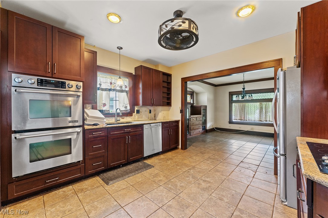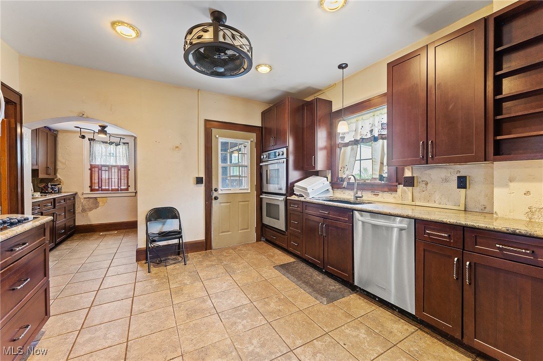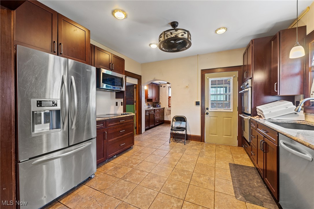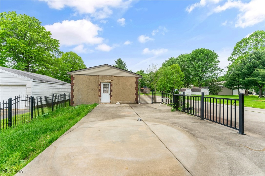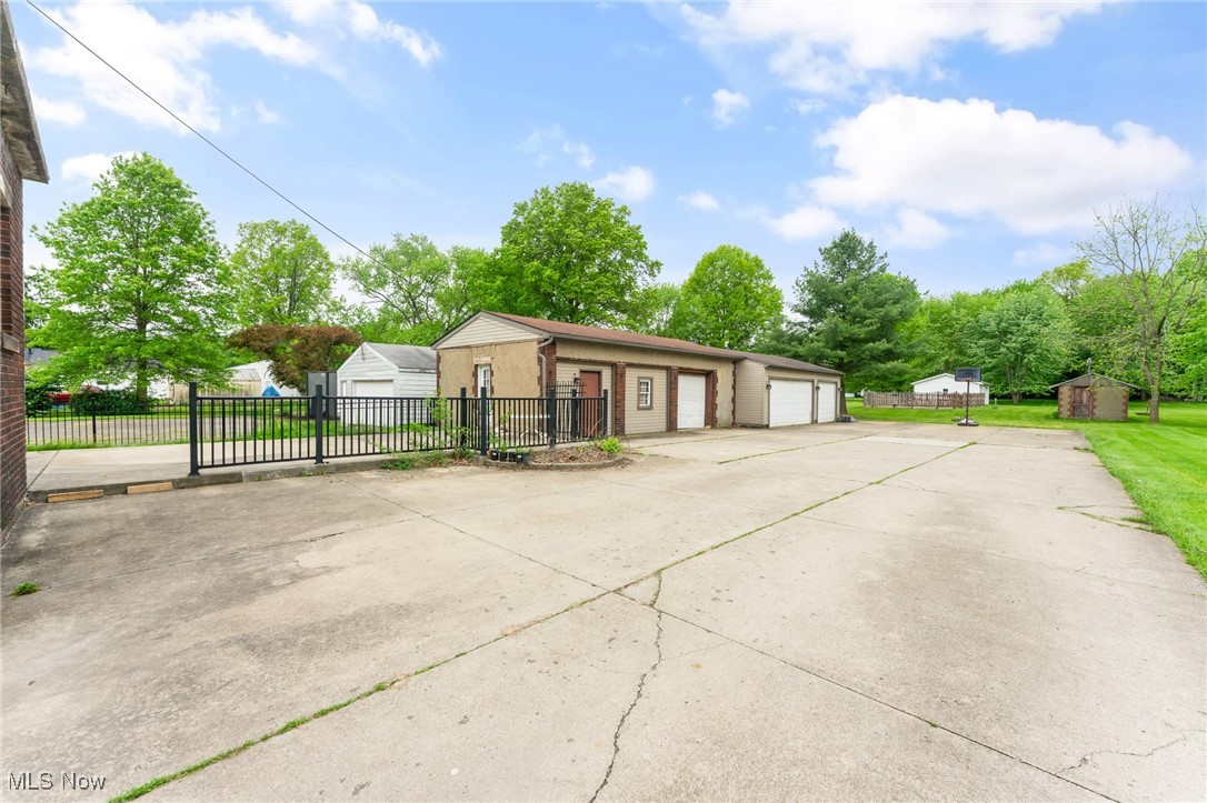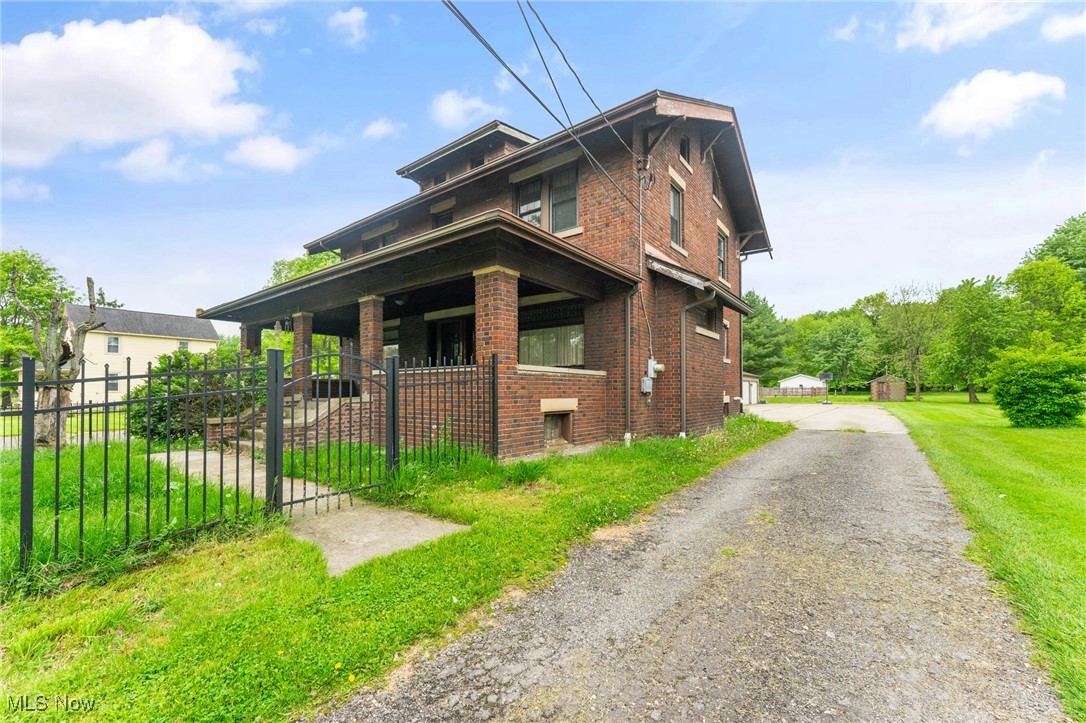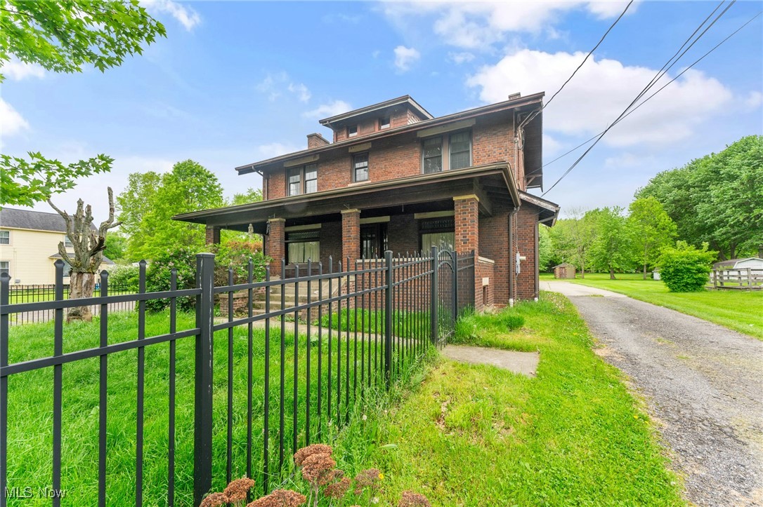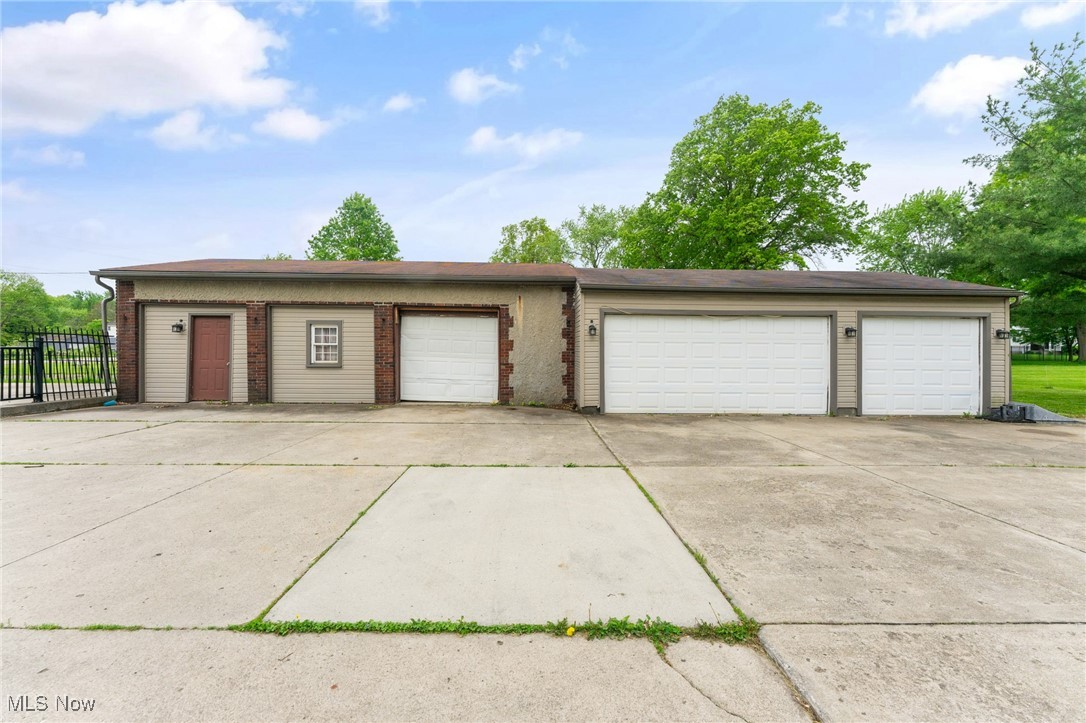 Discover the potential in this 1927 brick home, rich with historical charm and awaiting your personal touch. While it requires some updates, the property's standout feature is the expansive rear garage area, capable of accommodating up to six vehicles, ideal for car enthusiasts, hobbyists, or those needing substantial storage space. Inside, the kitchen boasts cherry cabinets, granite countertops, tile flooring, and a butler's pantry with an additional sink, offering both functionality and character. The large dining area is adorned with original baseboard trim, reflecting the home's classic appeal. A spacious entryway leads to a generous front porch, enclosed by a black wrought iron fence that also extends around the back patio, providing a sense of privacy and security. The living room is notably large, featuring hardwood flooring and a fireplace accent, creating a warm and inviting atmosphere. Upstairs, you'll find three well sized bedrooms with carpeting, and a full bathroom equipped with a tub surround and a custom dresser vanity. The basement offers additional storage, laundry facilities, and a half bath, adding to the home's practicality. Situated just down the street from Harding Park and in close proximity to Hubbard city amenities and Hubbard schools, this property offers both convenience and potential. With some renovation, this house can be transformed into a beautiful and functional home.