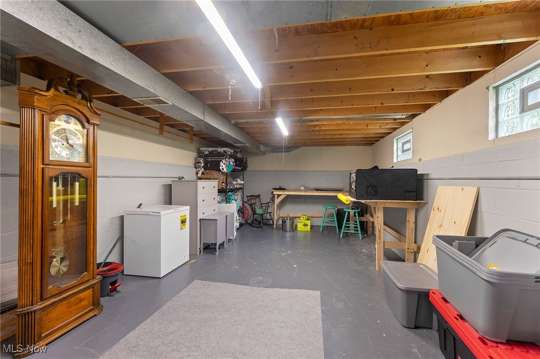 Downstairs, the lower level offers a potential fourth bedroom or flexible living space with carpeting, a laundry area with a shower and toilet, abundant storage, and a bonus storage room added with the home's expansion. Glass block windows, a 125-amp panel, lennox forced air furnace and AC installed 7/3/2025 and generator back-feed hookup add to the home's functionality.