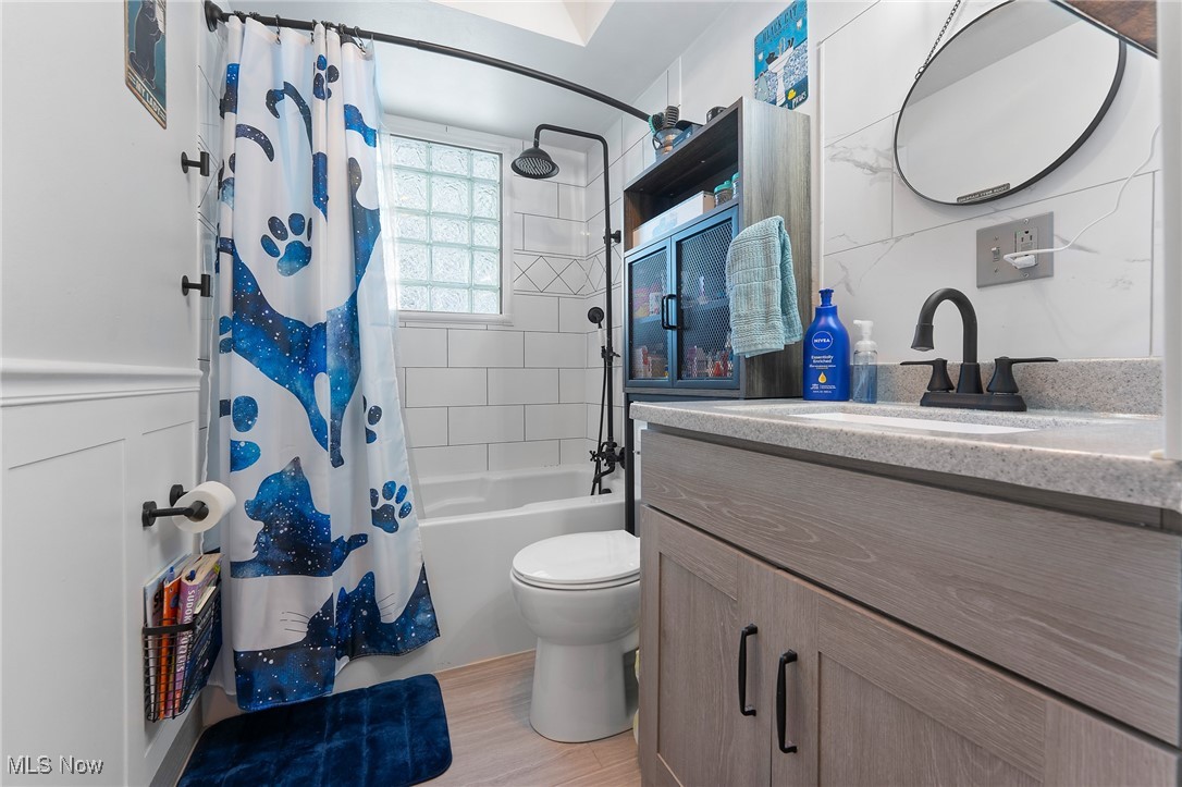Three bedrooms on the main level offer great closet space and updated ceiling fan light fixtures. The full bathroom includes a tiled tub surround, new vanity, and updated toilet.