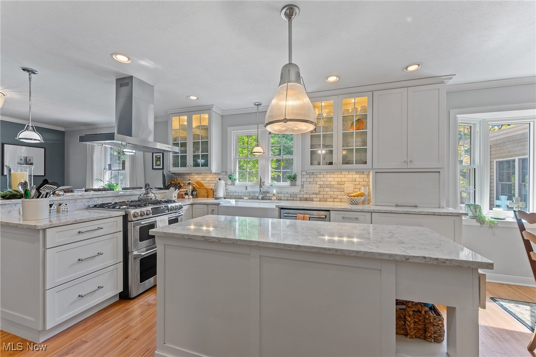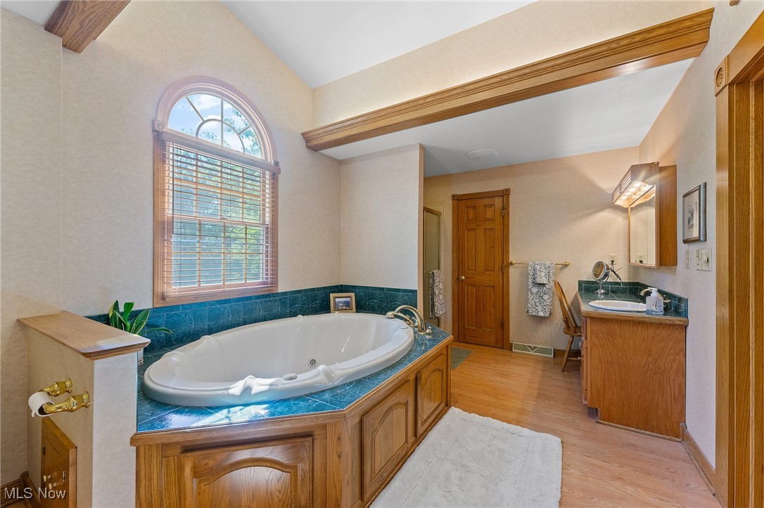 Stunningly upgraded 4-bedroom, 4-bath home in the sought-after Hubbard School District, this residence delivers both luxury and comfort from top to bottom. The completely remodeled kitchen features white wood soft-close cabinetry, quartz countertops, a subway tile backsplash, farmhouse sink, stainless appliances, a wine cooler, and dedicated coffee bar, plus a breakfast bar and sitting area--all anchored by durable vinyl plank flooring. Flowing from the eat-in area into the family room, you'll find a cozy gas fireplace surrounded by built-ins, with seamless access to an enclosed back porch boasting a vaulted ship-lap ceiling, and out to a deck and expansive stone patio overlooking a private backyard. Upstairs offer dual primary suites: one with vaulted ceilings, a loft-like living/office area, dual walk-in closets (one cedar lined), and a spa bath with Jacuzzi tub and walk-in shower; the other with its own full bath, walk-in shower, and generous closet. Two additional bedrooms provide plenty of space and closet storage. The finished basement is ideal for entertaining, featuring a wet bar with dishwasher, living area, hidden wine cellar, and ample storage--including near the laundry area with two sump pumps. High efficiency systems include two furnaces, central air conditioning, tankless hot water, whole-house filtration, plus an attached 2-car garage with insulated doors and a separate 2-car garage in the back. 200-amp panel with a 100-sub panel. Exterior updates such as vinyl siding and dimensional shingle roof round out this incredible package. A truly exceptional home that combines elegant finishes, thoughtful layout, and premium amenities. Schedule a showing today!!