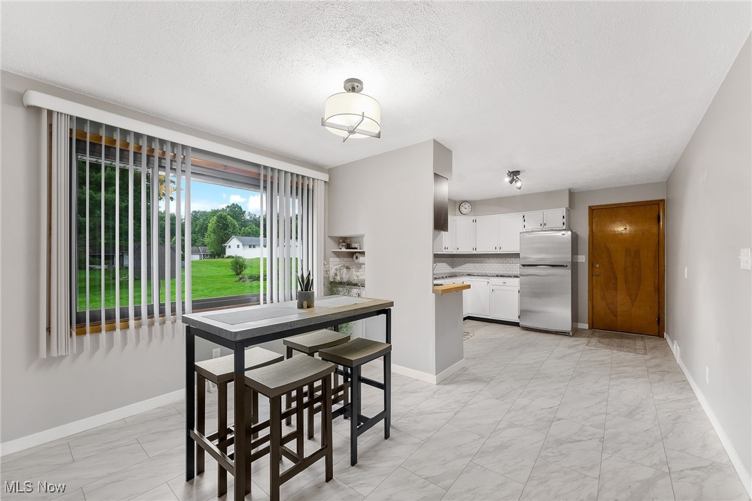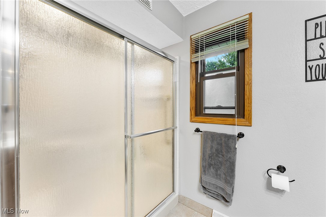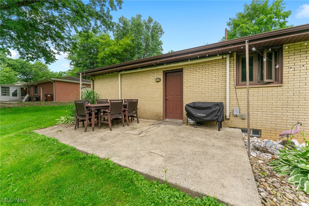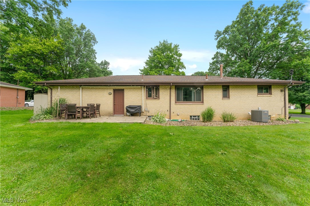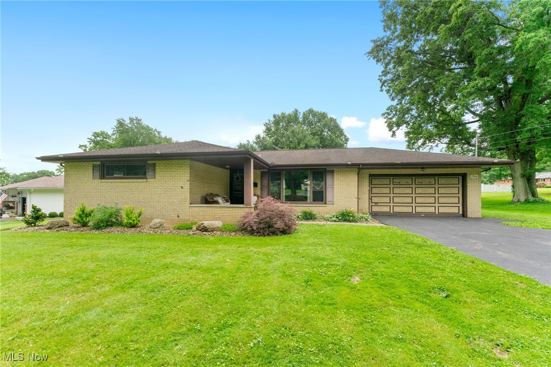 Tucked away in a quiet Masury neighborhood within the Hubbard School District, this charming brick ranch offers both privacy and functionality. The home features a dimensional shingle roof, dark vinyl windows, and a covered front porch that leads into a spacious living room with beautiful hardwood flooring. From here, you can access the hallway leading to the bedrooms or continue into the open dining and kitchen area. The dining room features an updated light fixture and flows nicely into the kitchen, which includes painted wood cabinets, hi-definition Formica countertops, a subway-style peel-and-stick backsplash, and durable vinyl tile flooring throughout both spaces. All three bedrooms are generously sized, with the primary bedroom offering two large double closets. The main bathroom features a walk-in shower with a glass door, a large vanity, and tile flooring. Additional hallway closets provide plenty of storage. The full basement is unfinished but offers ample space for storage, a laundry area, and an additional full bathroom. An attached two-car garage offers convenient access to the back patio, which overlooks the backyard and includes a small storage shed. Additional features include a 100 amp electrical panel, forced air furnace with central air, newer hot water tank, and glass block windows. A solid, well-maintained home in a peaceful setting.