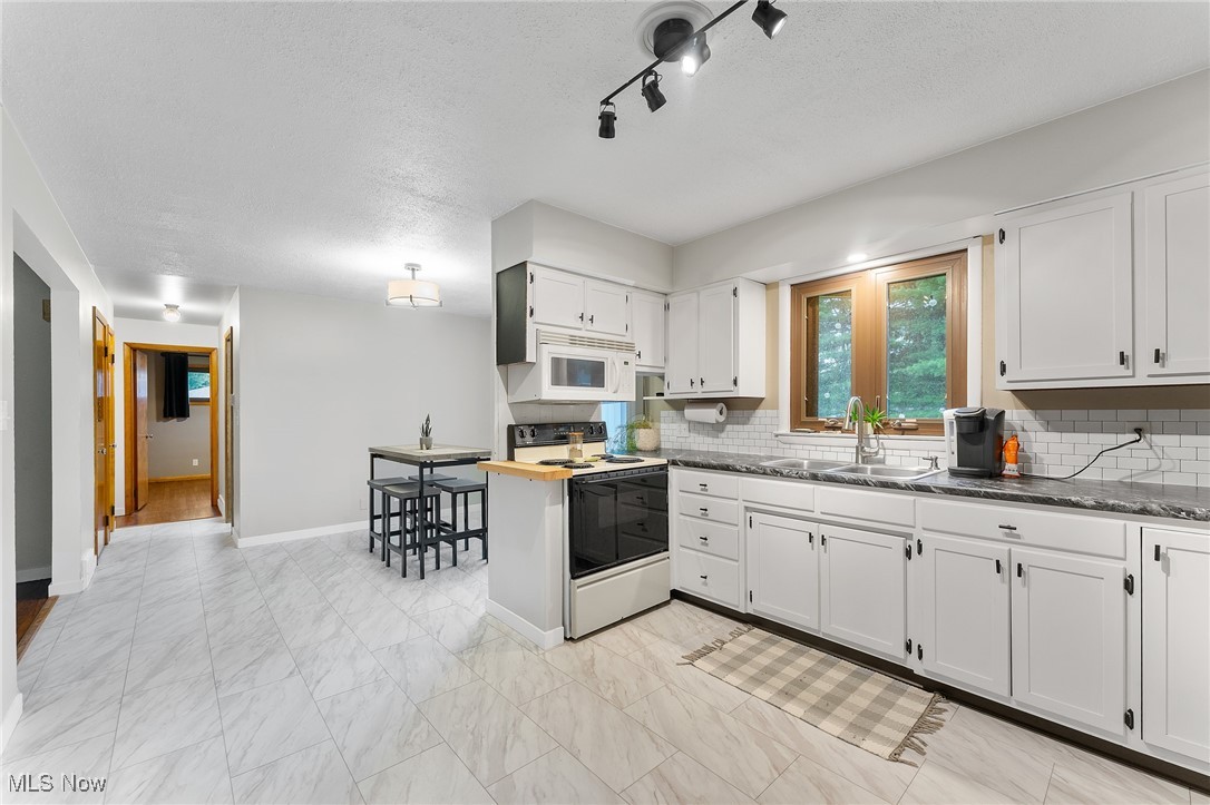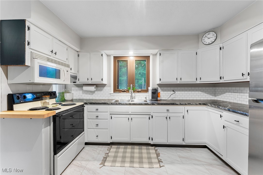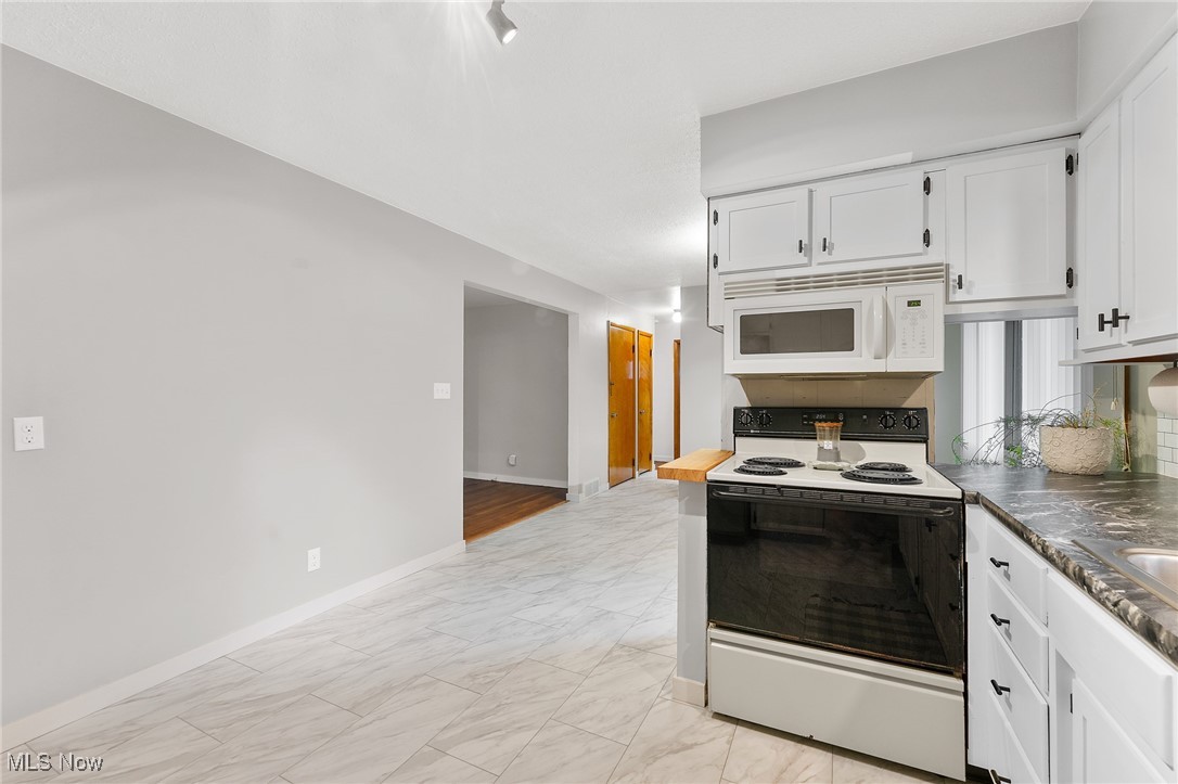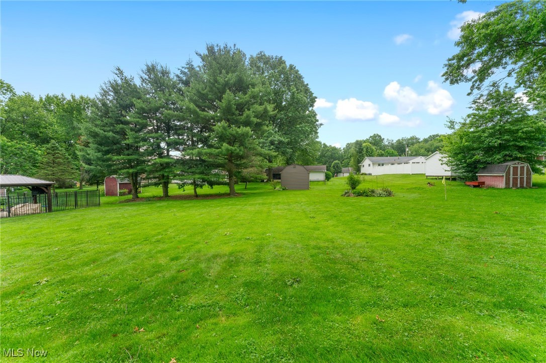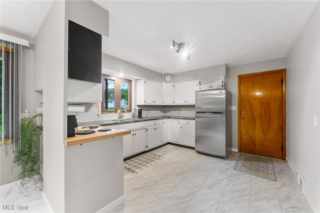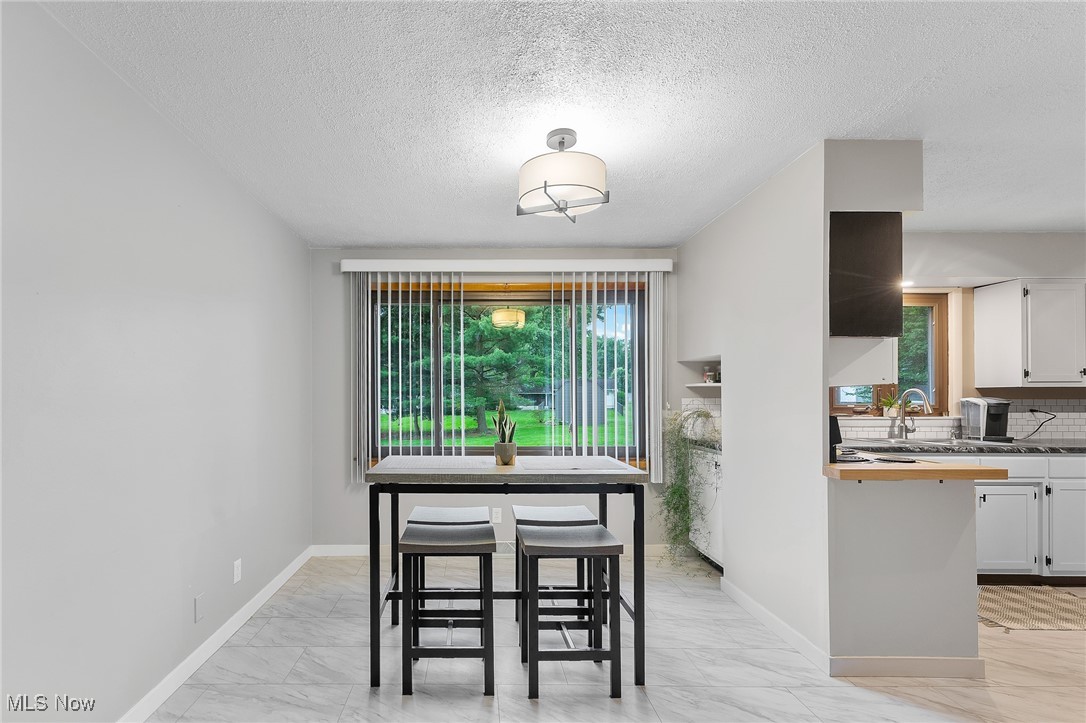 Tucked away in a quiet Masury neighborhood within the Hubbard School District, this charming brick ranch offers both privacy and functionality. The home features a dimensional shingle roof, dark vinyl windows, and a covered front porch that leads into a spacious living room with beautiful hardwood flooring. From here, you can access the hallway leading to the bedrooms or continue into the open dining and kitchen area. The dining room features an updated light fixture and flows nicely into the kitchen, which includes painted wood cabinets, hi-definition Formica countertops, a subway-style peel-and-stick backsplash, and durable vinyl tile flooring throughout both spaces. All three bedrooms are generously sized, with the primary bedroom offering two large double closets. The main bathroom features a walk-in shower with a glass door, a large vanity, and tile flooring. Additional hallway closets provide plenty of storage. The full basement is unfinished but offers ample space for storage, a laundry area, and an additional full bathroom. An attached two-car garage offers convenient access to the back patio, which overlooks the backyard and includes a small storage shed. Additional features include a 100 amp electrical panel, forced air furnace with central air, newer hot water tank, and glass block windows. A solid, well-maintained home in a peaceful setting.