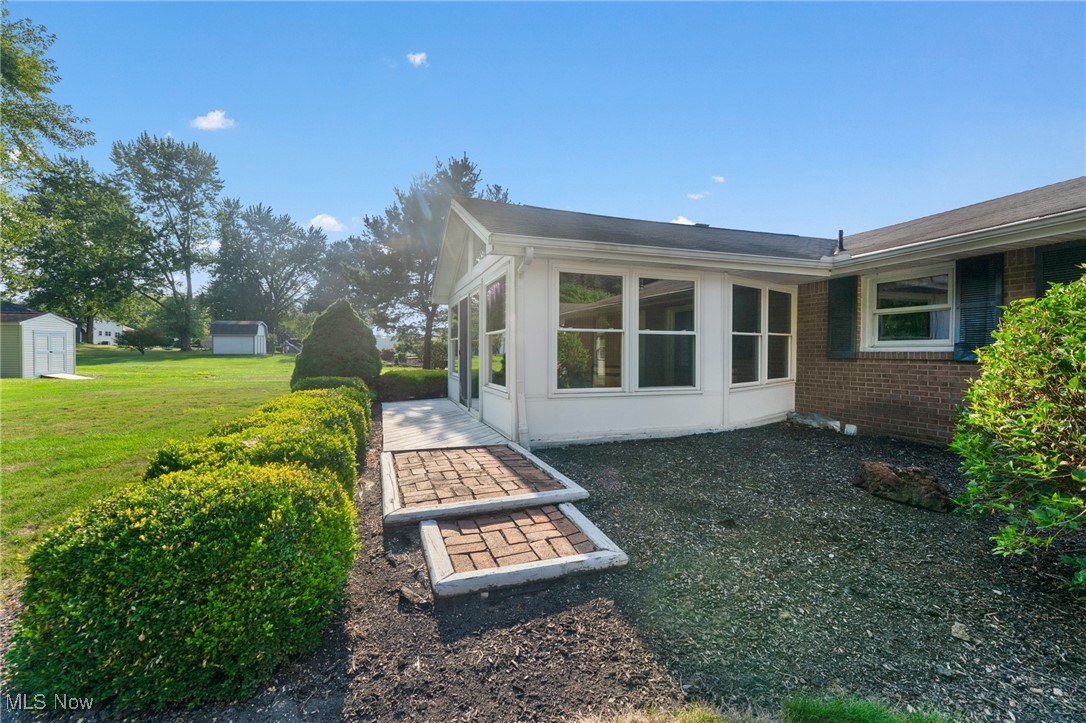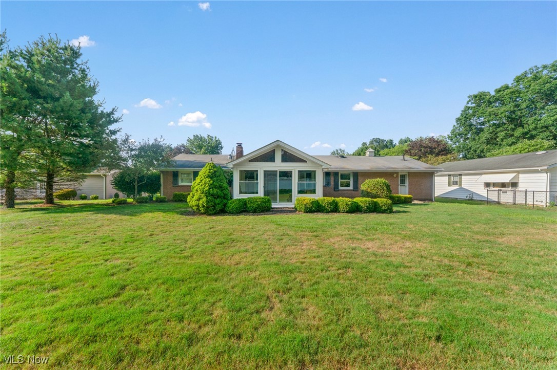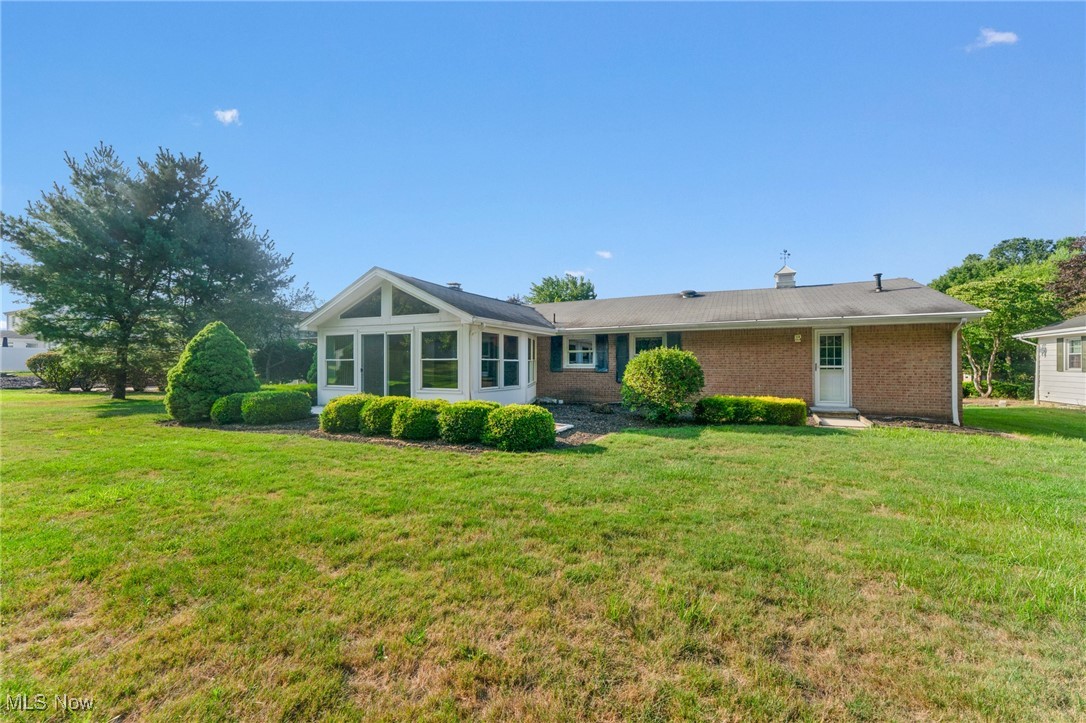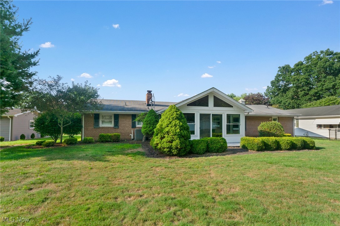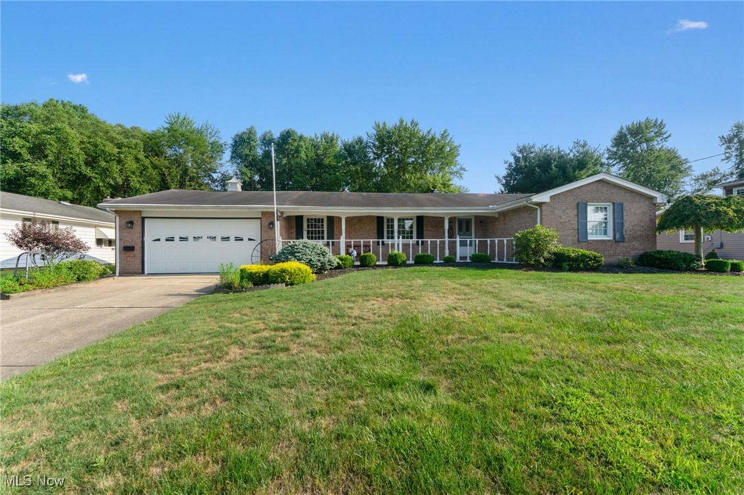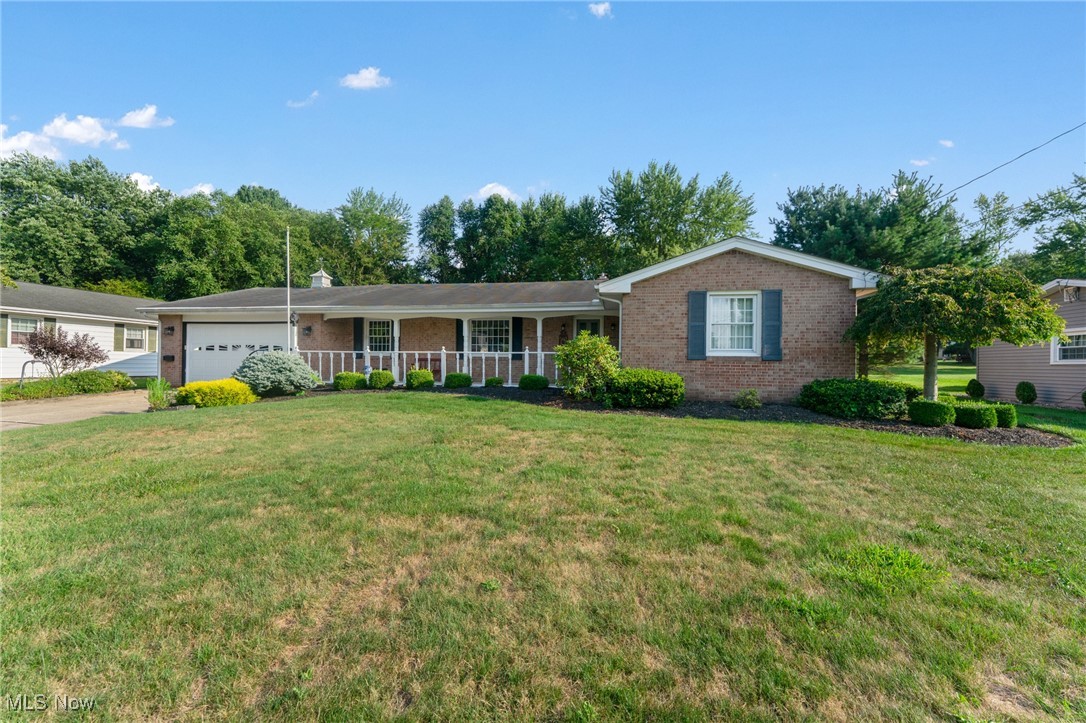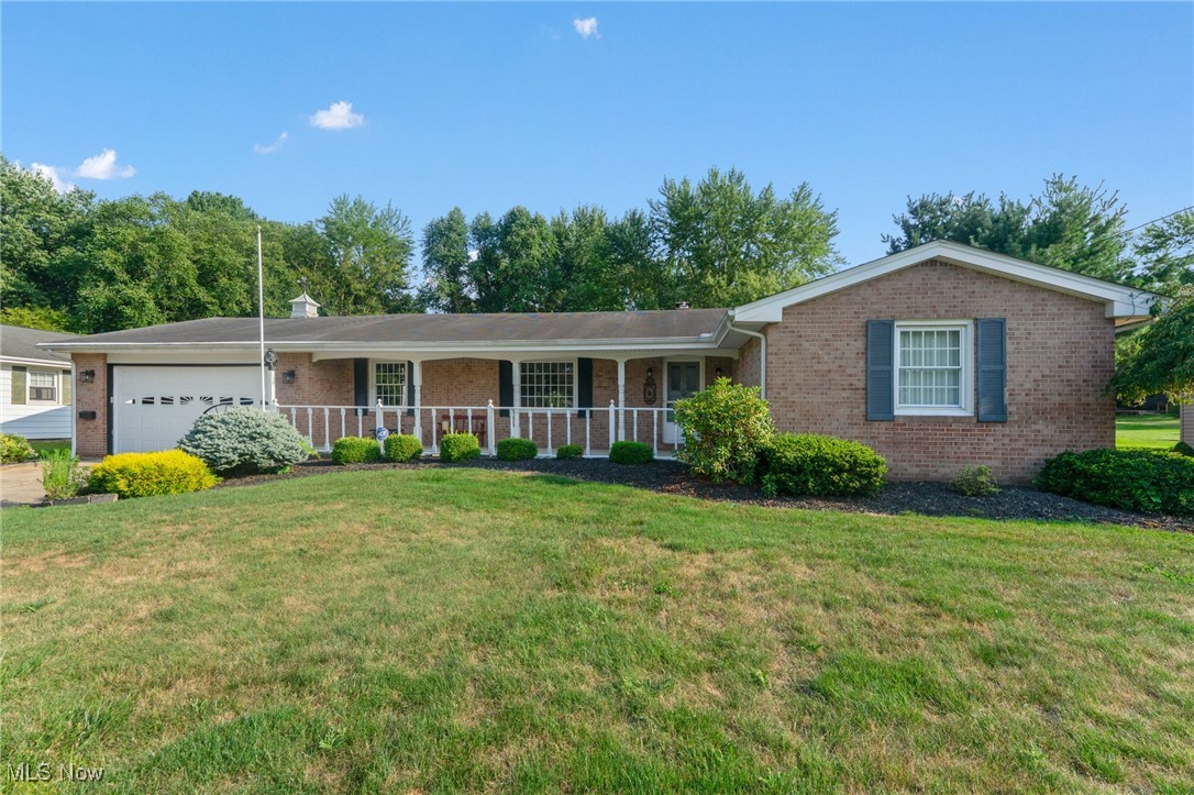 Tucked away in one of Hubbard's quiet, desirable neighborhoods near Pine Lakes Golf Club, this all-brick ranch offers exceptional space, comfort, and functionality for a growing family. With 3 bedrooms, 3 full bathrooms, and a thoughtfully designed layout, this home delivers both charm and convenience. Curb appeal shines with a large front porch, well-maintained landscaping, and a double concrete driveway leading to an attached two-car garage. Inside, the foyer welcomes you into a spacious living room that connects to a formal dining area featuring carpet and built-ins for added character and storage. The eat-in kitchen boasts solid wood cabinetry, a high-definition Formica countertop, tile backsplash, pantry, and a cozy desk nook, perfect for everyday functionality. Just off the kitchen is a warm and inviting family room with a fireplace, built-ins, and access to a stunning bonus sunroom with vaulted shiplap ceilings and panoramic views of the backyard. All 3 bedrooms are located on the main floor, each offering generous closet space. The primary suite includes a private bath with a tiled walk-in shower, while a second full bath features a Bath Fitter-style tub, tile walls, and an oversized vanity. Downstairs, the finished basement provides even more living space with a large rec room, wet bar area, and abundant storage, including a cedar closet and workshop space. Additional highlights include a high-efficiency furnace and A/C, 100 amp electrical service, sump pump, public utilities, and a durable three-tab shingle roof. Located in the Hubbard School District, this spacious and solidly built ranch offers everything you need in a peaceful, established neighborhood. Don't miss the opportunity to make this house your forever home!